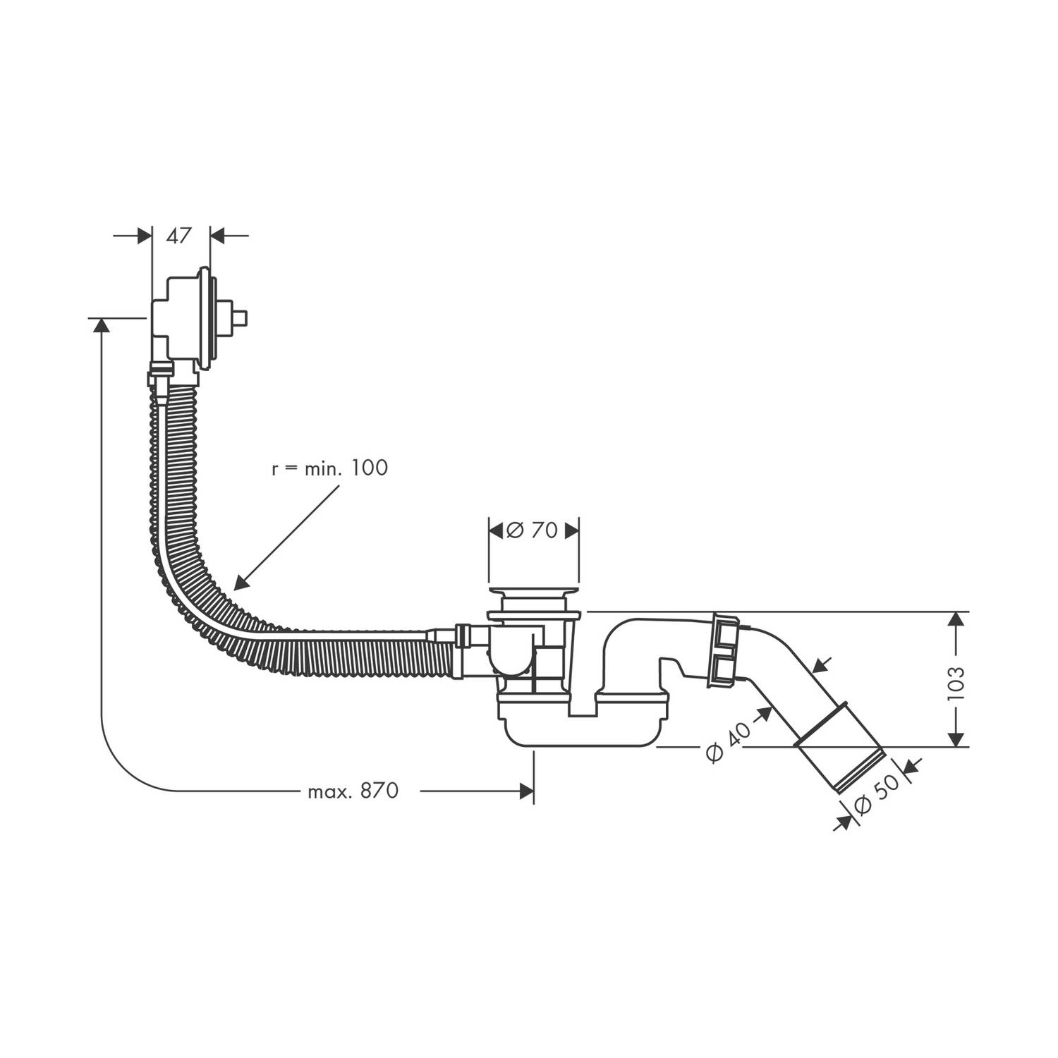 Hansgrohe Badewannenab-und Überlaufgarnitur Flexaplus