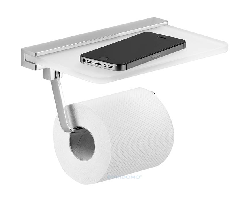 Avenarius Toilettenpapierhalterhalter mit moderner Glasablage. Gefertigt aus hochwertigem Metall und Glas.