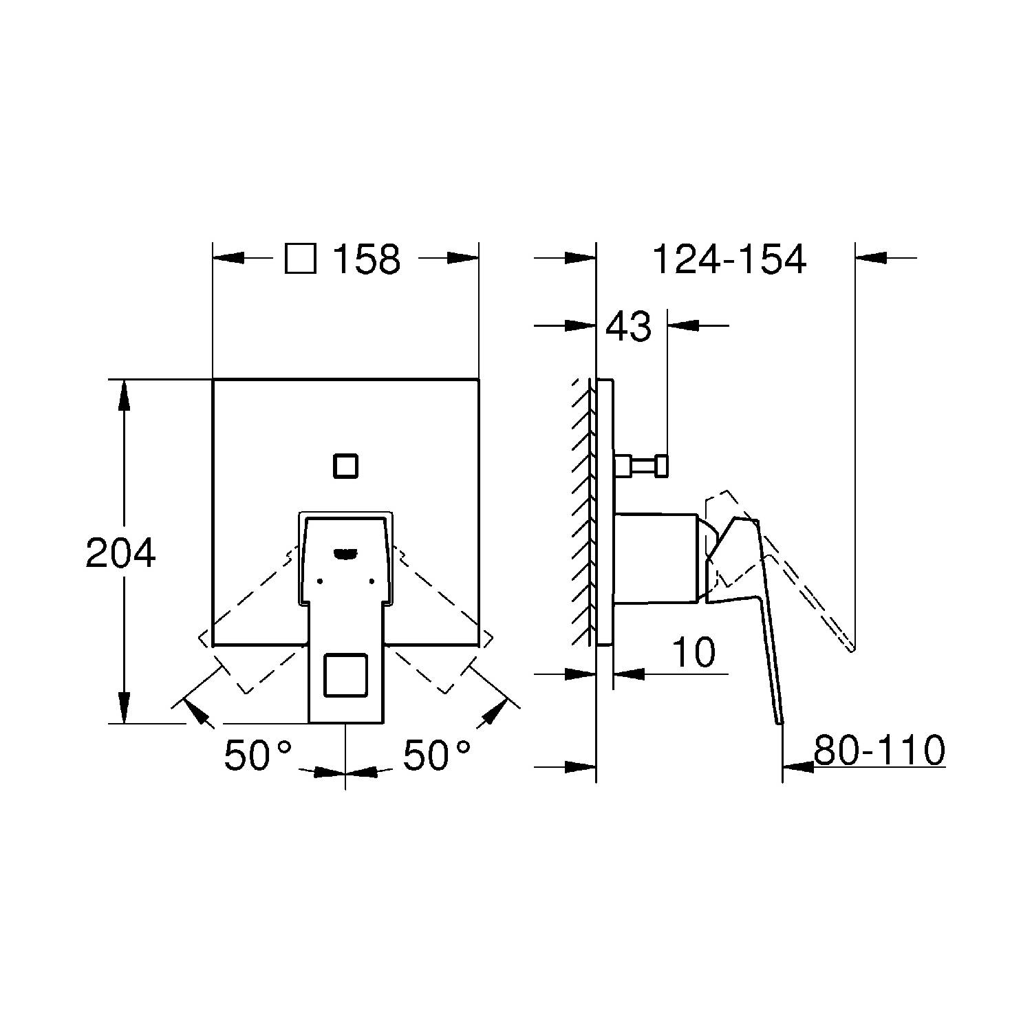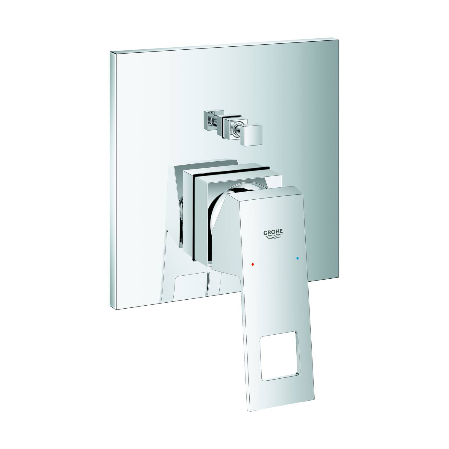 Das GROHE Eurocube Reglerset für Einhebel-Armaturen bietet den perfekten letzten Schliff für jede Dusche oder Badewanne. Die in Deutschland hergestellte GROHE Eurocube Kollektion zeichnet sich durch ein zeitgemäßes, unverwechselbares Design mit klaren Linien aus, das sich für jedes Badezimmer eignet. Das haptische Design lädt zur Interaktion ein. Die Metallrosette und der Hebel verleihen ein Gefühl von Stabilität. Das schlanke Profil der Wandrosette mit nur 158 mm Durchmesser und einer Tiefe von nur 10 mm zieht Design-Puristen magisch an. Diese elegante 2-Wege-Umstellung misst lediglich 43 mm und ermöglicht, mühelos zwischen Kopf- und Handbrause oder zwischen Dusch- und Wannenauslauf umzustellen. Dank der GROHE SilkMove Keramikkartusche lassen sich Wassertemperatur und -menge mit einem leichtgängigen Hebel einfach regeln. Die strapazierfähige GROHE StarLight Chromoberfläche bewahrt ihr makelloses Aussehen für viele Jahre. Die GROHE QuickFix Rosette mit Verriegelungssystem und abgedeckter Befestigung macht die Installation zum Kinderspiel. Es gilt zu beachten, dass dieser Thermostat zusammen mit der optional erhältlichen GROHE Rapido SmartBox (35600000) montiert werden muss.