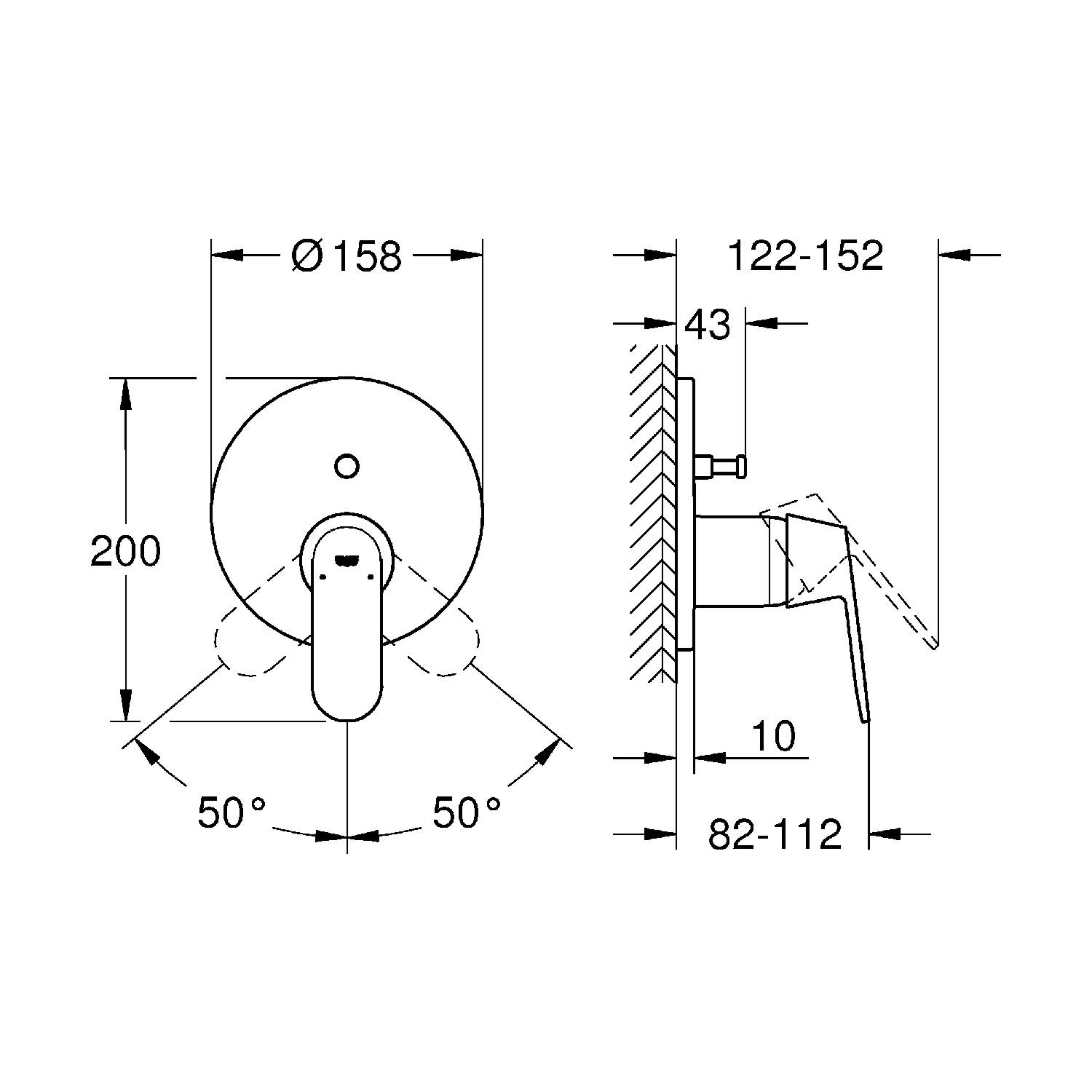 GROHE Eurosmart Cosmopolitan Einhand-Wannenbatterie Fertigmontageset für Rapido SmartBox (35 600) GROHE SilkMove 46 mm Keramikkartusche GROHE StarLight Oberfläche Wandrosette mit GROHE QuickFix mit verdeckter Rosetten- und Schaftabdichtung, verdeckte Befestigung Rosette aus Metall, nachträglich 6 Grad ausrichtbar Bedienungshebel aus Metall automatische Umstellung: Wanne/Brause Durchfluss: Abgang B = 27 l/min, Abgang C = 27 l/min ohne Rohbau-Set chrom