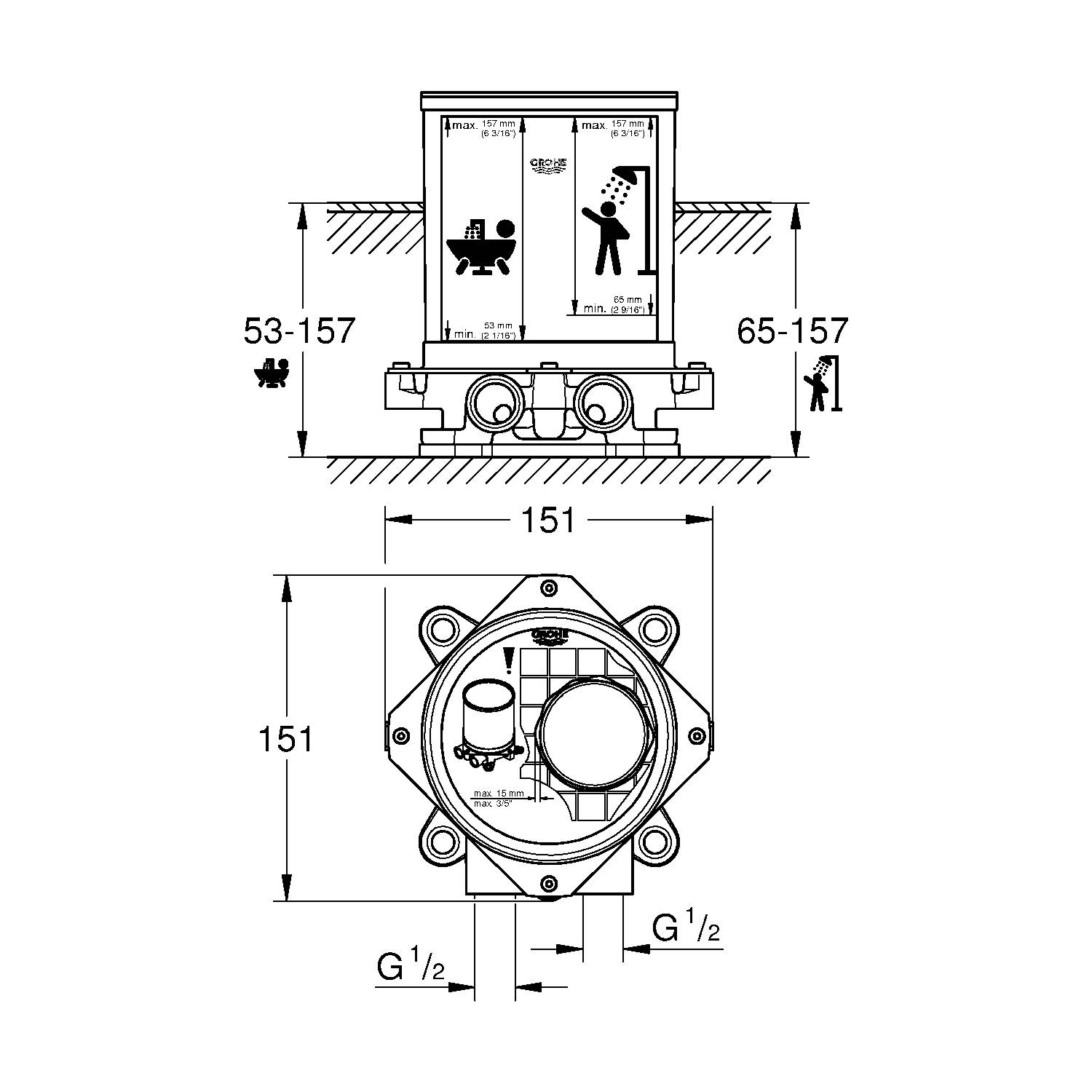 Einbautiefe 53-157 mm