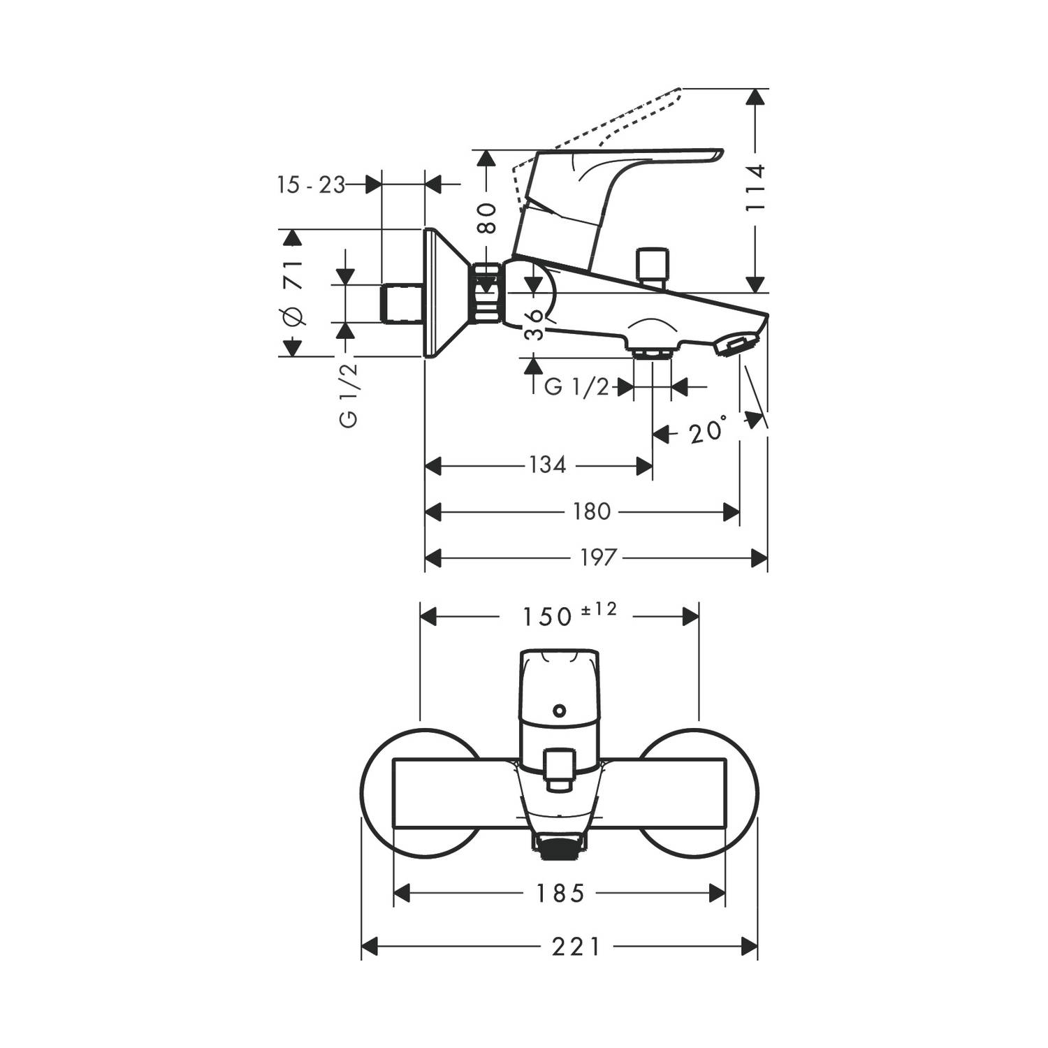 - Durchflussmenge Wanneneinlauf (bei 3 bar): 22 l/min