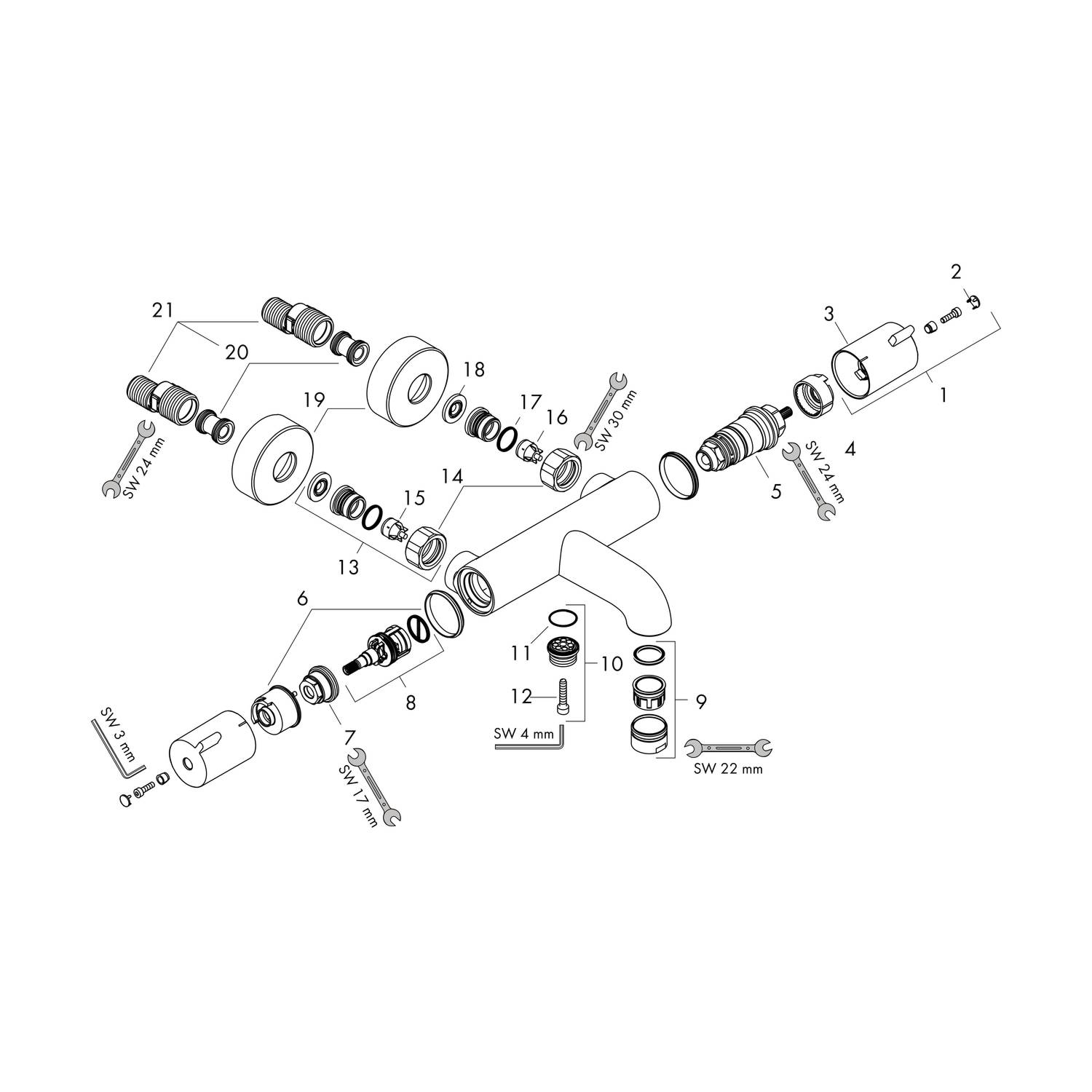 Haben Sie noch Fragen? Wir stehen Ihnen telefonisch unter +49 (0) 4621 - 30 60 89 0 zur Verfügung.Hansgrohe Thermostat Ecostat CL 1001 Wanne AP DN15 chrom
