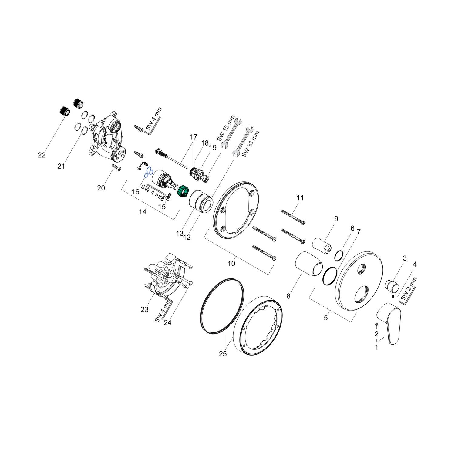Für die Unterputzmontage: Sie benötigen als Zubehör den Hansgrohe Grundkörper iBox universal Artikelnummer: 01800180 sofern nicht bereits in der Wand verbaut