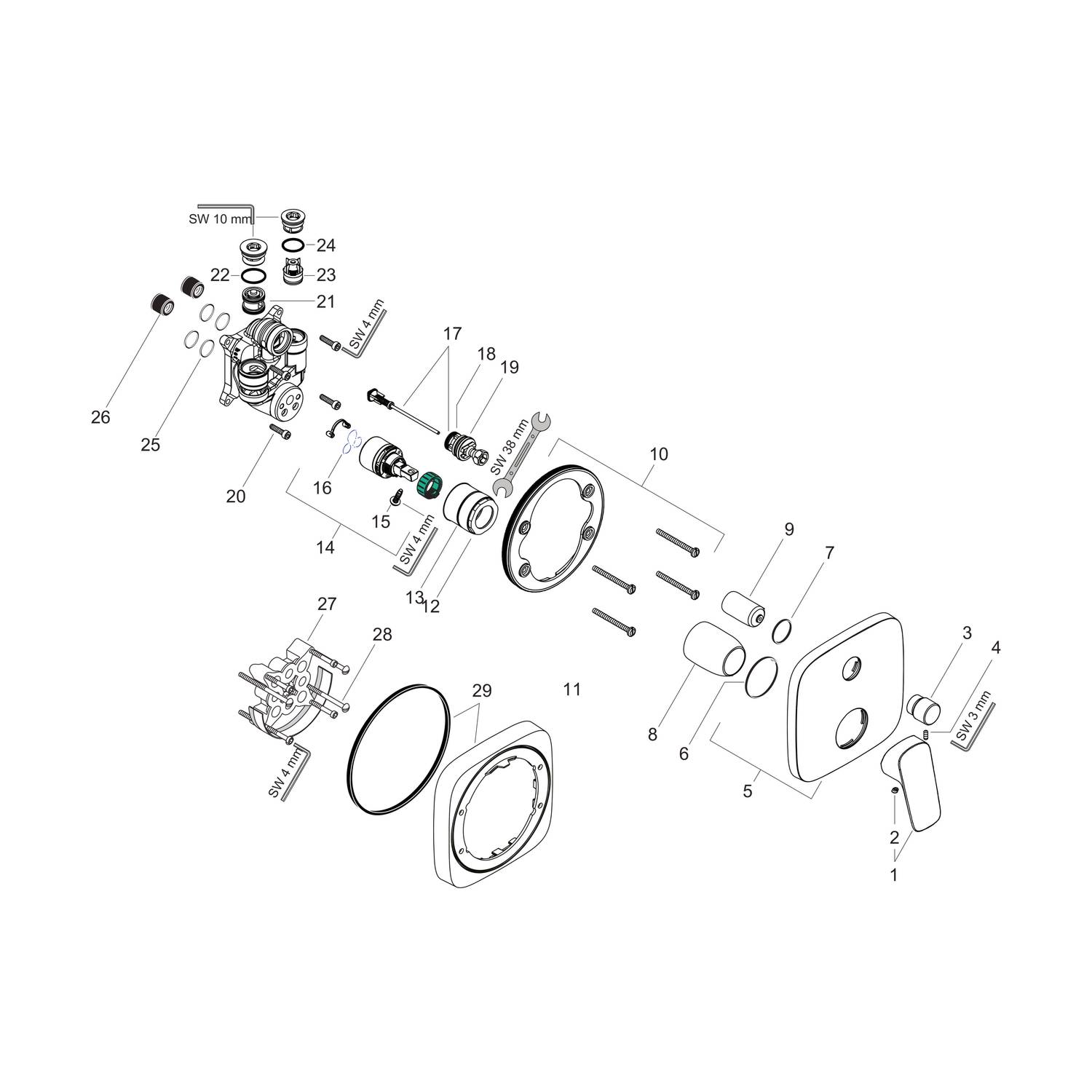 - Lieferumfang: Griff, Hülse, Rosette, Umsteller, Funktionsblock