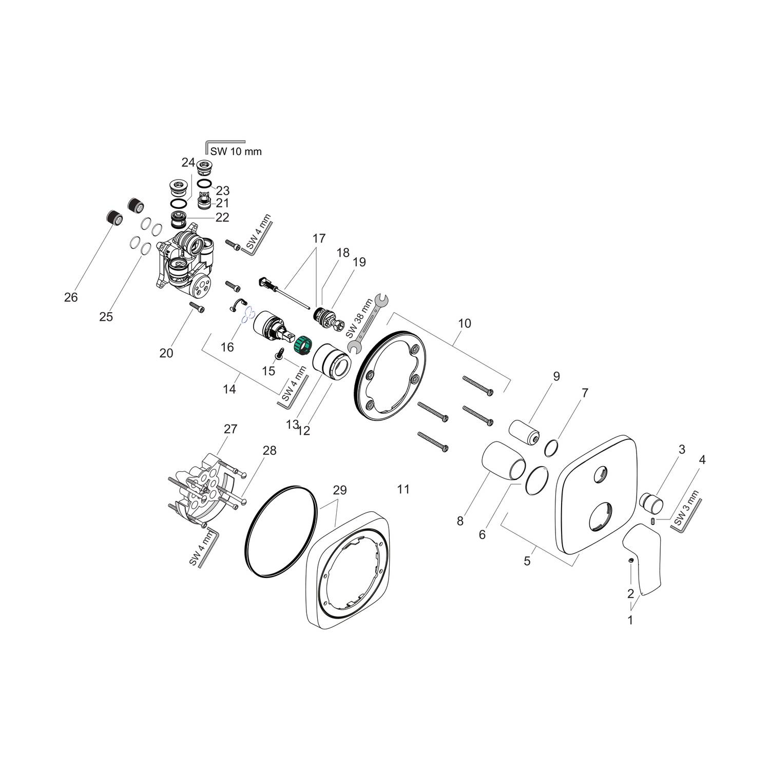- Lieferumfang: Griff, Hülse, Rosette, Umsteller, Funktionsblock