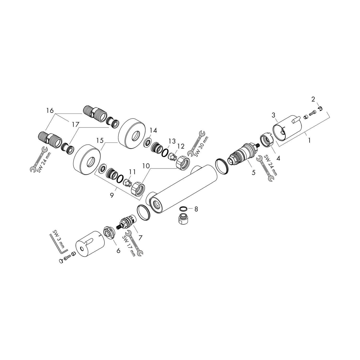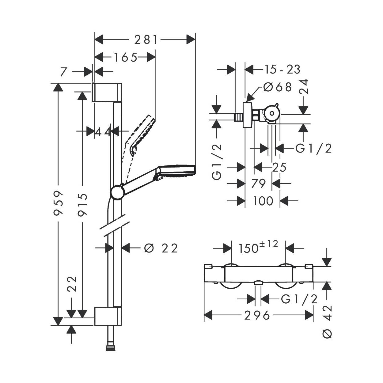 Haben Sie noch Fragen? Wir stehen Ihnen telefonisch unter +49 (0) 4621 - 30 60 89 0 zur Verfügung.Hansgrohe Ecostat 1001 CL das Komplett Set mit Brause-Thermostat und Stange.