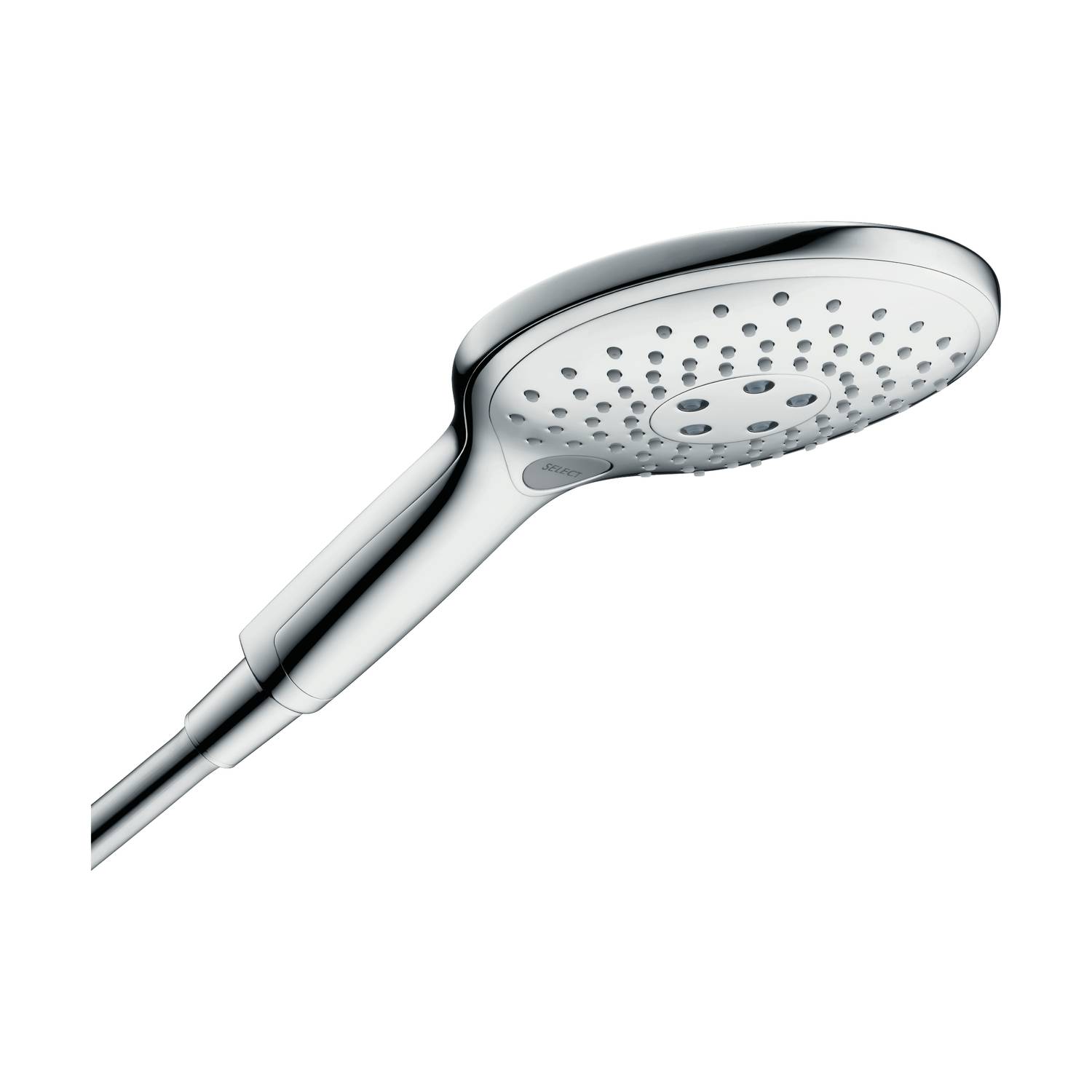 - Mit einem leichten Druck auf den Select-Knopf am Griff der Handbrause wechseln Sie die Strahlart bequem und schnell