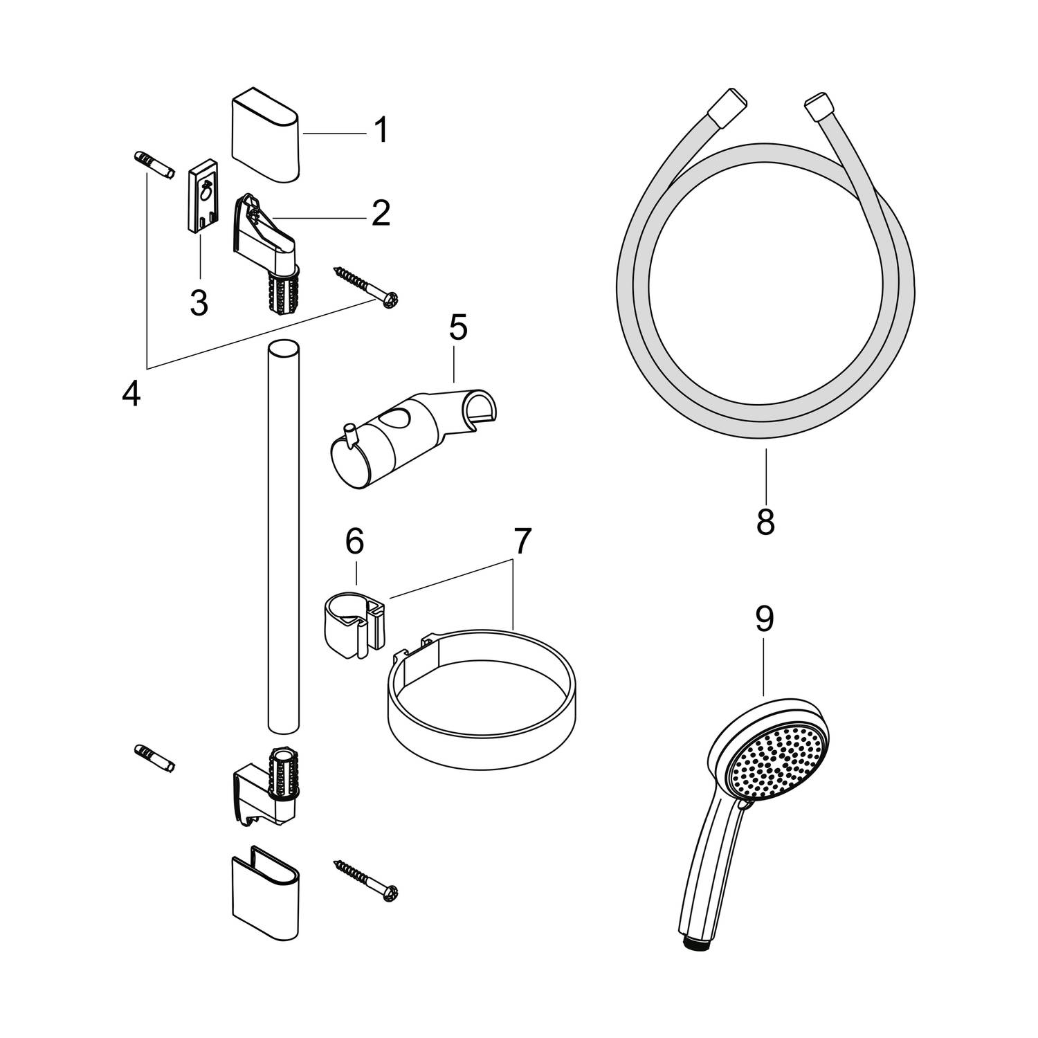 - Sie erhalten in einem Set Handbrause, Brauseschlauch, Brausestange und Seifenschale