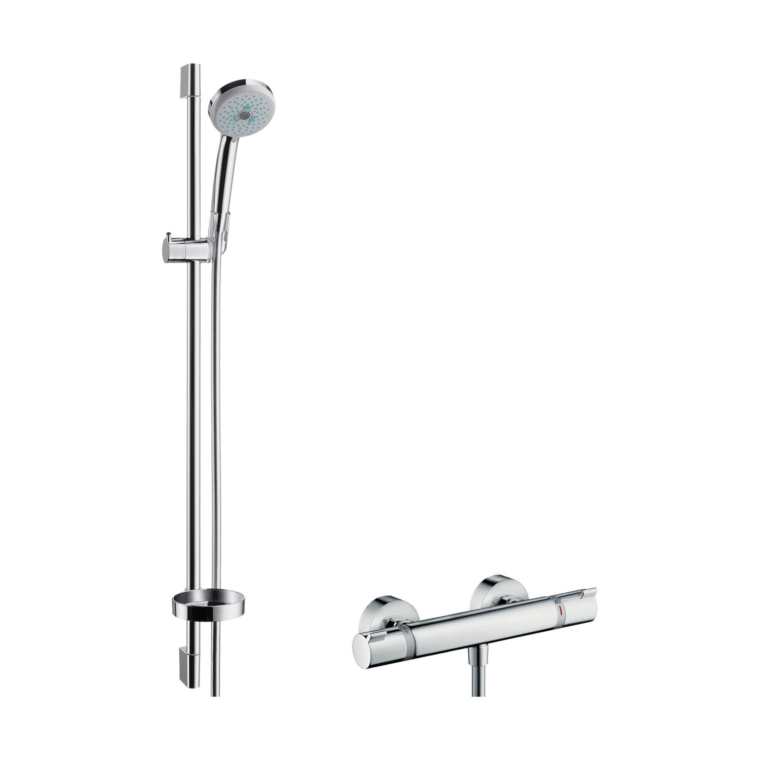 Haben Sie noch Fragen? Wir stehen Ihnen telefonisch unter +49 (0) 4621 - 30 60 89 0 zur Verfügung.Hansgrohe Croma 100 Duschsystem Aufputz Multi mit Ecostat Thermostat und Brausestange 90 cm chrom