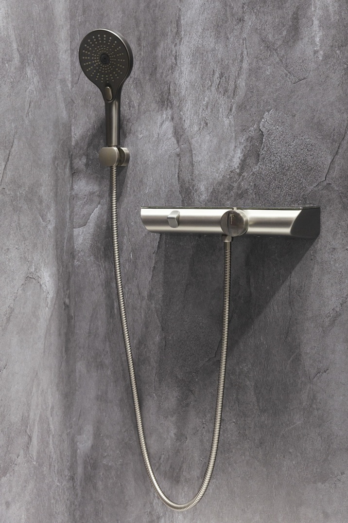 - Farbe Gunmetal gebürstet mit dunkelgrauer Sprayplatte und Switch-Funktion