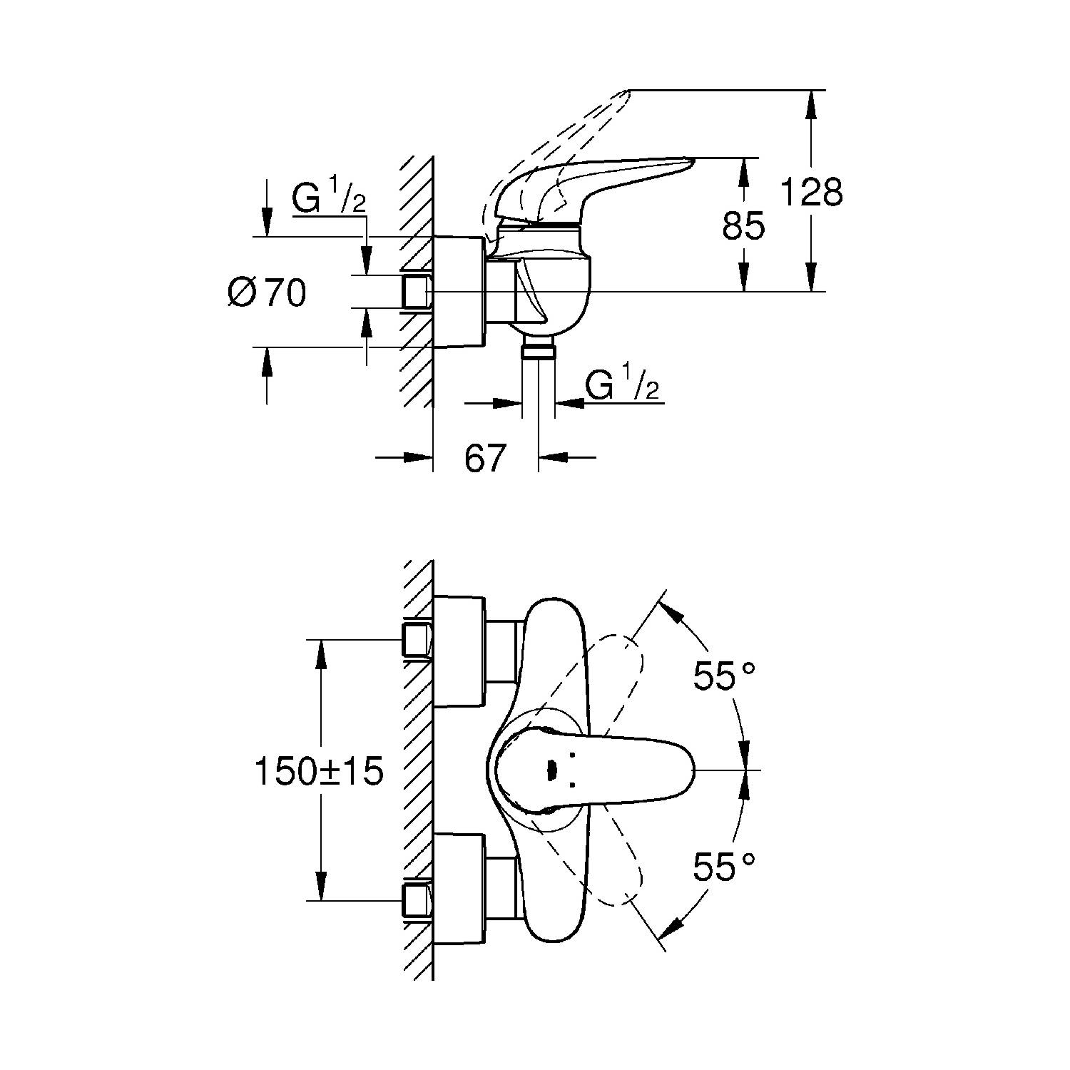 Grohe Einhand-Brausebatterie Eurostyle Wandmontage