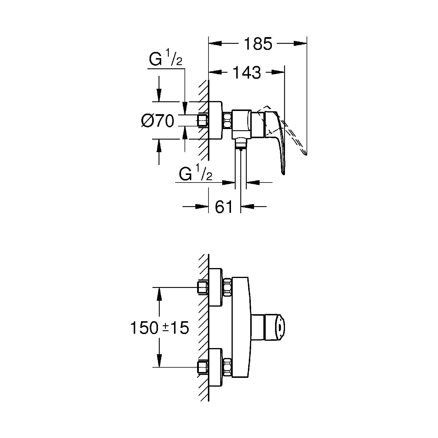 Grohe EUROSMART Einhand-Brausebatterie 1/2" mit Temperaturbegrenzer & Rückflussverhinderer