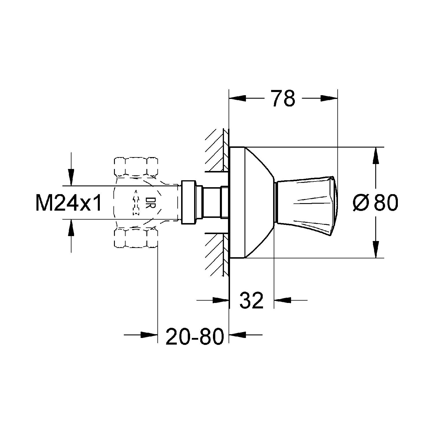Grohe Unterputz-Ventil Oberbau Costa Mark. rot Einbautiefe 20-80 mm chrom