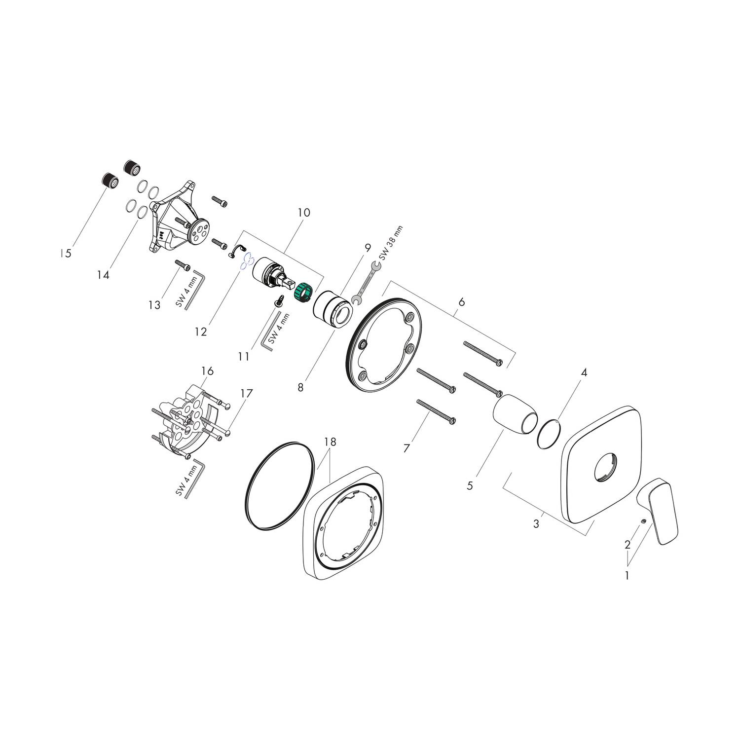 - Für die Unterputzmontage: Sie benötigen als Zubehör den Hansgrohe Grundkörper iBox universal Artikelnummer: 01800180 , sofern nicht bereits in der Wand verbaut