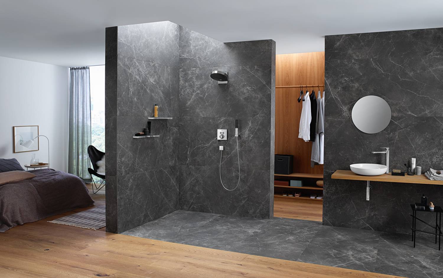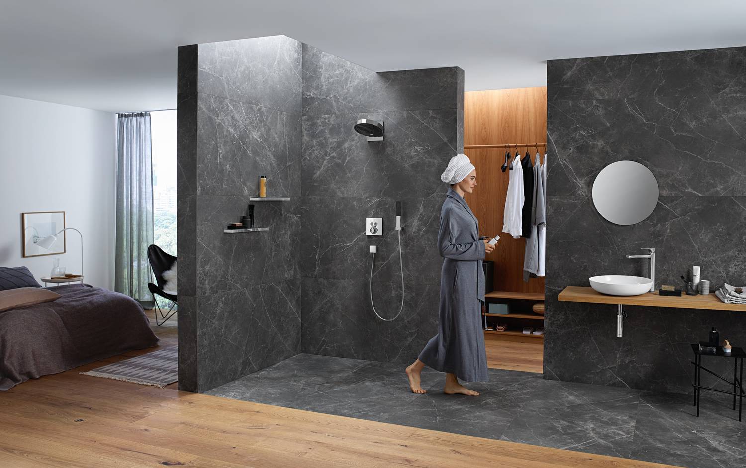 - Auf hansgrohe iBox universal Grundkörper installieren und unter Putz verlegen lassen. Für reduziertes Design, das Freiraum schafft und die Technik verschwinden lässt
