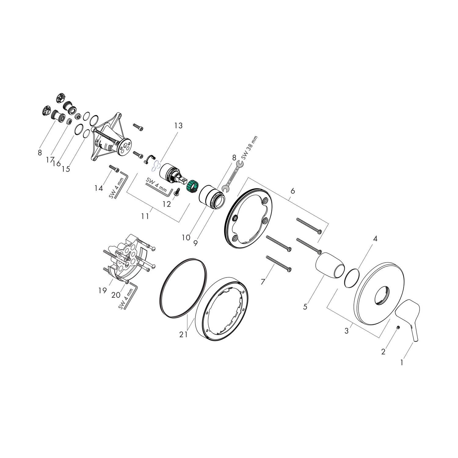 - Lieferumfang: Rosette, Griff, Hülse, Funktionsblock
