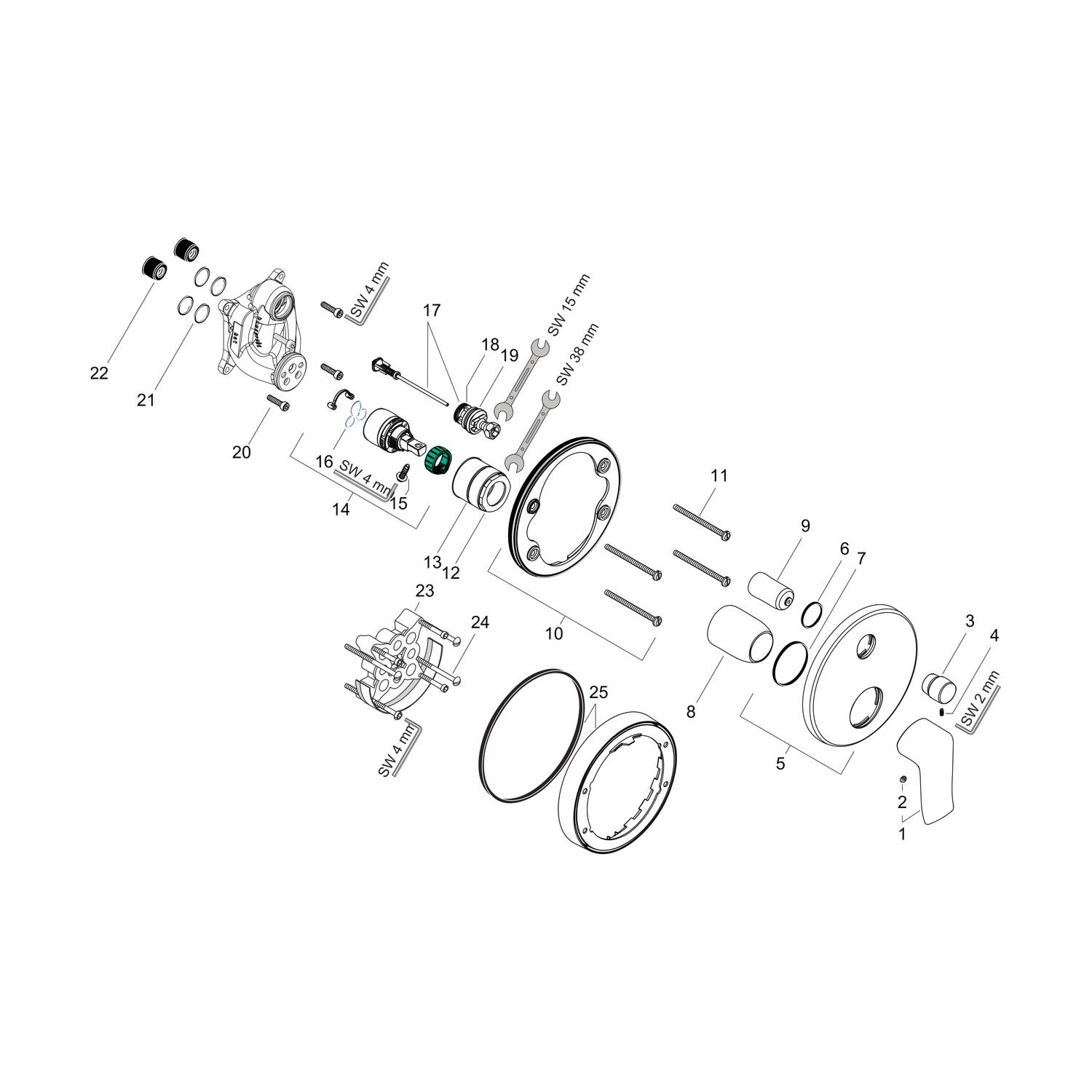 - Lieferumfang: Griff, Hülse, Rosette, Umsteller, Funktionsblock