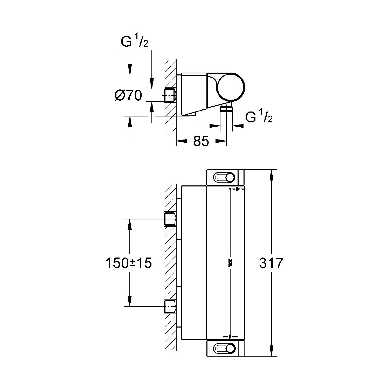 Haben Sie noch Fragen? Wir stehen Ihnen telefonisch unter +49 (0) 4621 - 30 60 89 0 zur Verfügung.Grohe Thermostat-Brausebatterie Grohtherm 2000 Wandmontage mit Ablage chrom