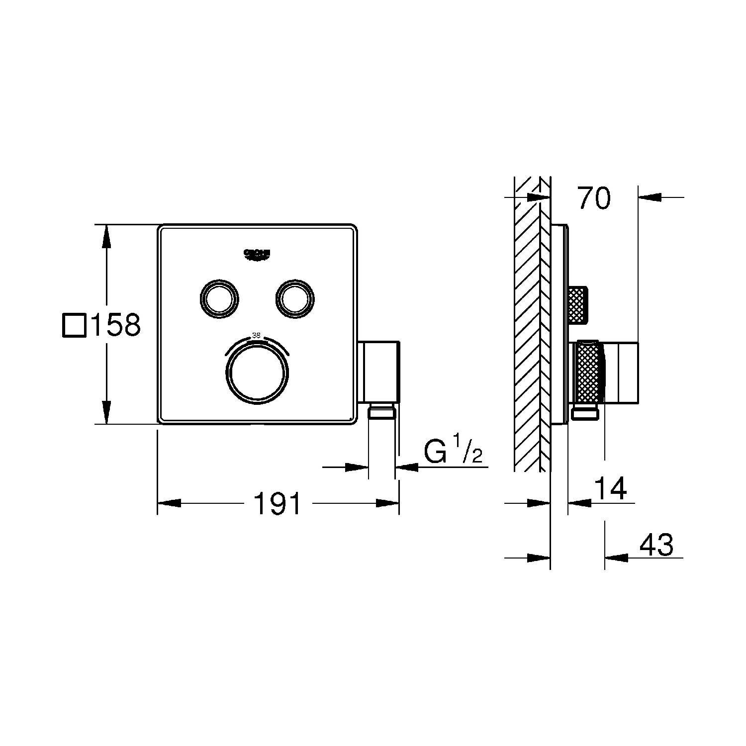 Grohe Thermostat Grohtherm SmartControl Fertigmontageset eckig