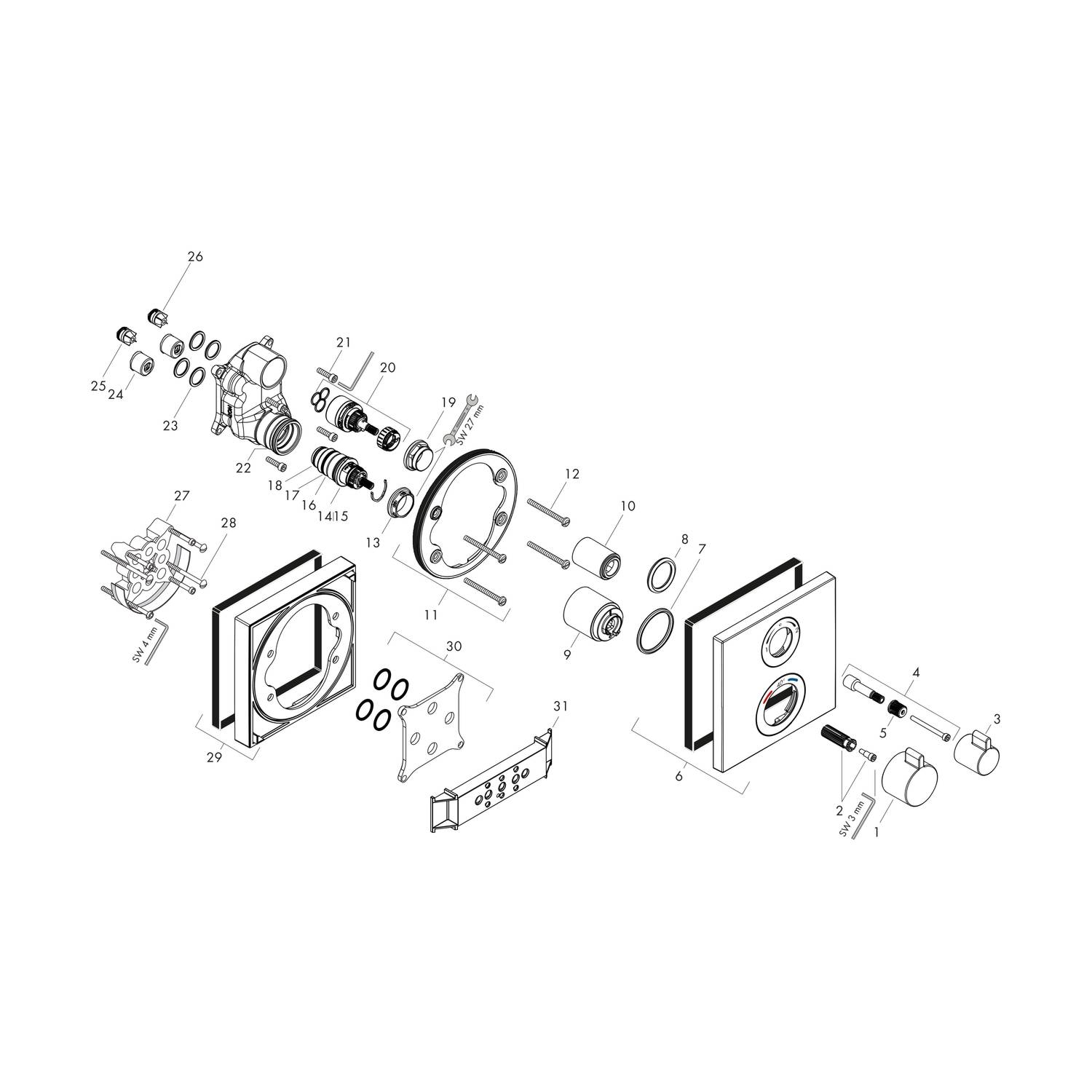 Haben Sie noch Fragen? Wir stehen Ihnen telefonisch unter +49 (0) 4621 - 30 60 89 0 zur Verfügung.Hansgrohe Thermostat Unterputz Ecostat Square Fertigset 2 Verbraucher chrom