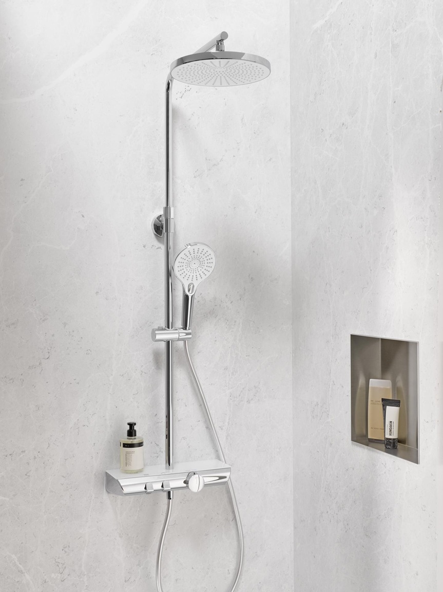 HSK Duschsystem AquaXPro 200 Thermostat Glasablage Weiß Schwarz Kopfbrause rund Ø 250 300 400 mm