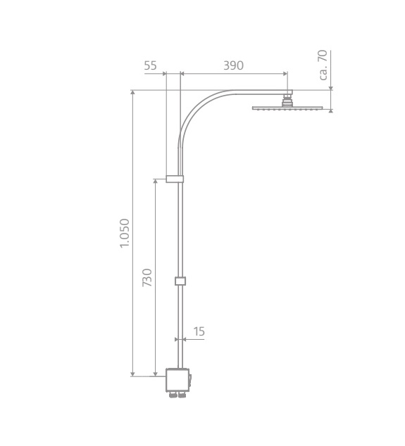 - Kopfbrause Eckig mit höhenverstellbarer Halterung