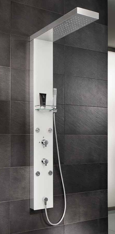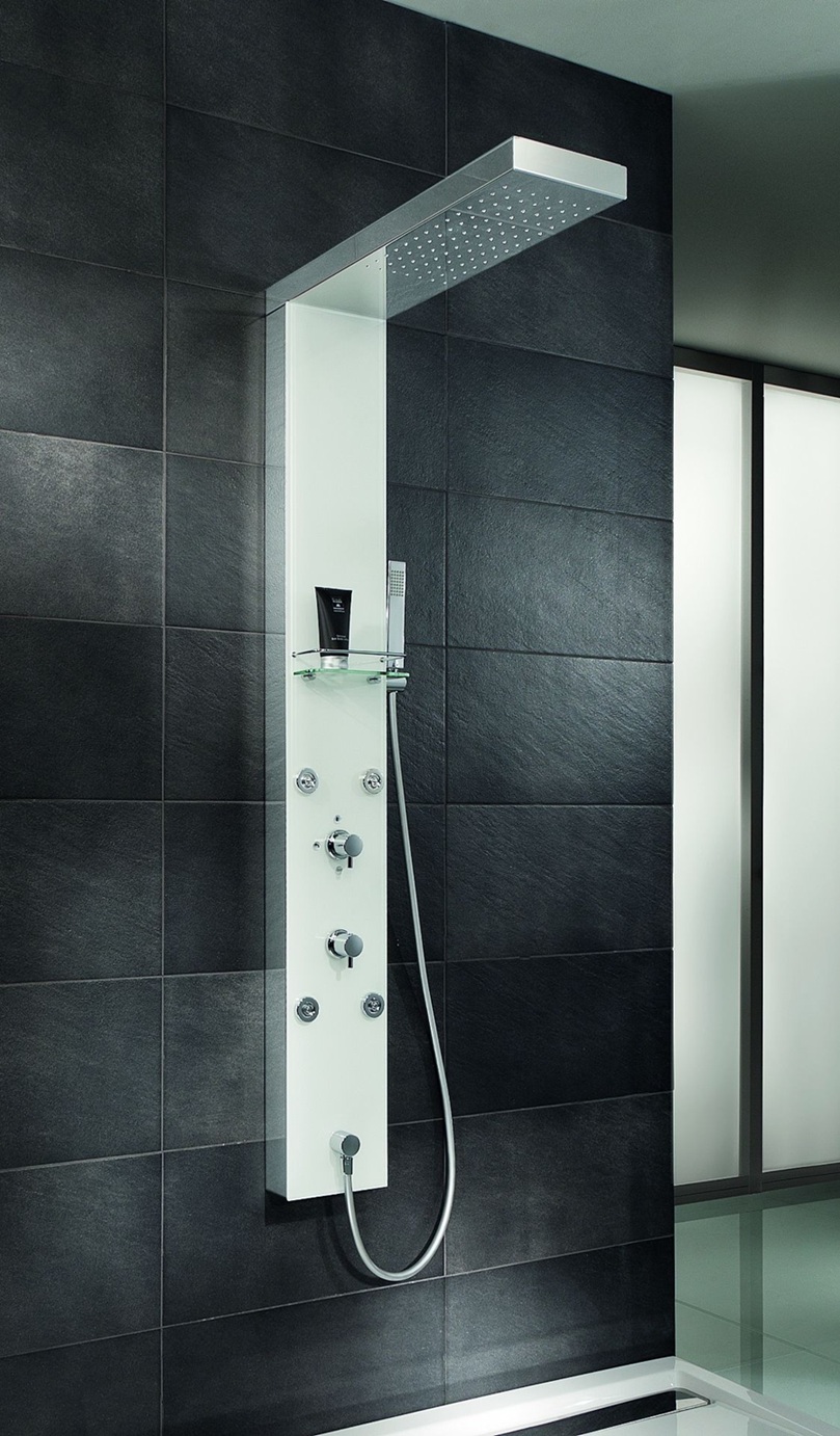 HSK Duschpaneele Lavida Edelstahl mit Regenbrause Massagedüsen Glasablage