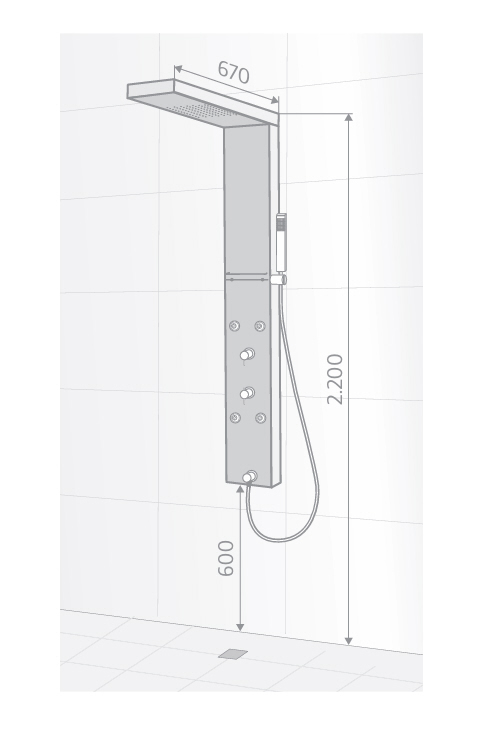 - Durchfluss Massagedüsen: 11,5 l/min (gemessen bei 3 bar)