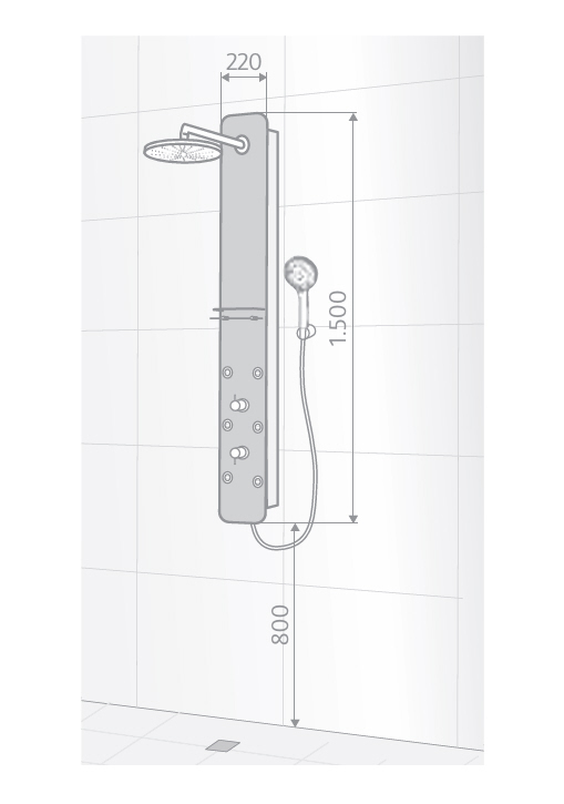 - Durchfluss Massagedüsen: 13 l/min (gemessen bei 3 bar)