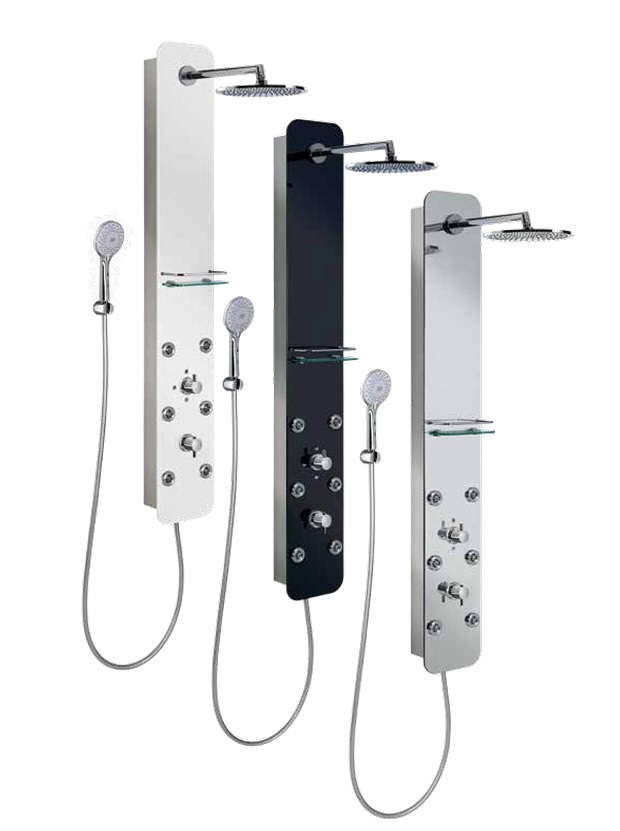 HSK Duschpaneele Lavida Softcube Edelstahl mit Kopfbrause Massagedüsen Glasablage