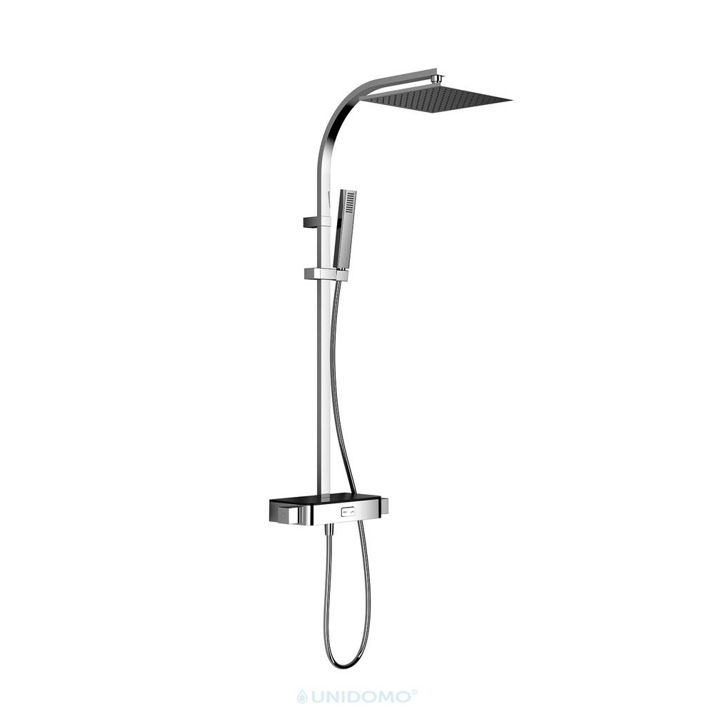 Das HSK RS 500 AquaSwitch Thermostat bietet modernes Duscherlebnis mit eckigem Design, Sicherheitsthermostat-Armatur und Echtglasablage (ESG) in Chrom mit weißer oder schwarzer Ablage. Mit flacher eckiger Kopfbrause 250 × 250 × 8 mm, Designhandbrause Eckig und AquaSwitch-Technik sorgt es für sicheres Duschen bei 38°C-Sperre. Verschiedene eckige Kopfbrausen und optionale Softcube-Handbrause verfügbar – perfekt für moderne Bäder, die geometrische Präzision und Premium-Funktionalität vereinen.