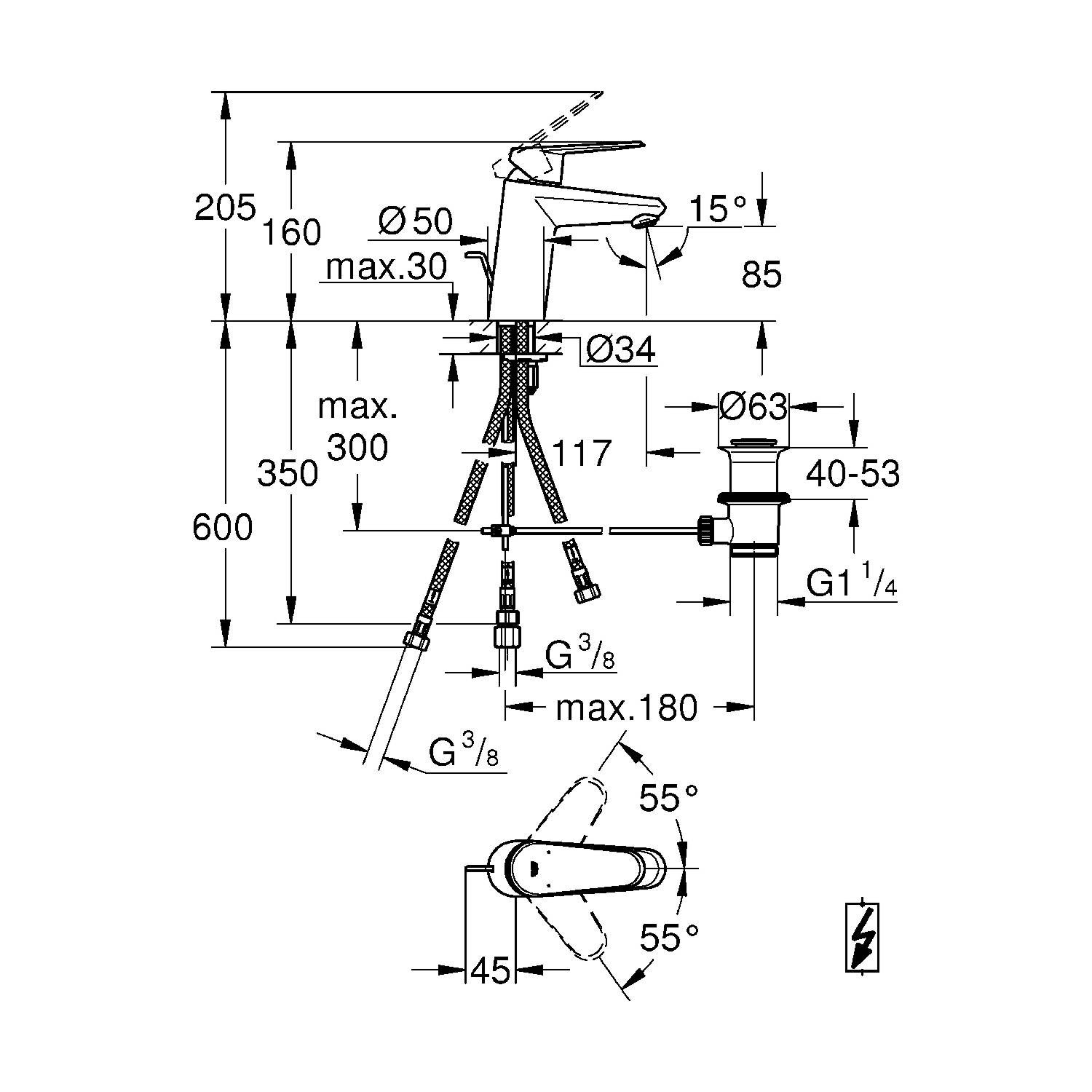 Haben Sie noch Fragen? Wir stehen Ihnen telefonisch unter +49 (0) 4621 - 30 60 89 0 zur Verfügung.Grohe Eurodisc C Einhebel-Waschtischbatterie Niederdruck mit Zugstangen-Ablaufgarnitur – Perfekte Lösung für offene Warmwasserbereiter