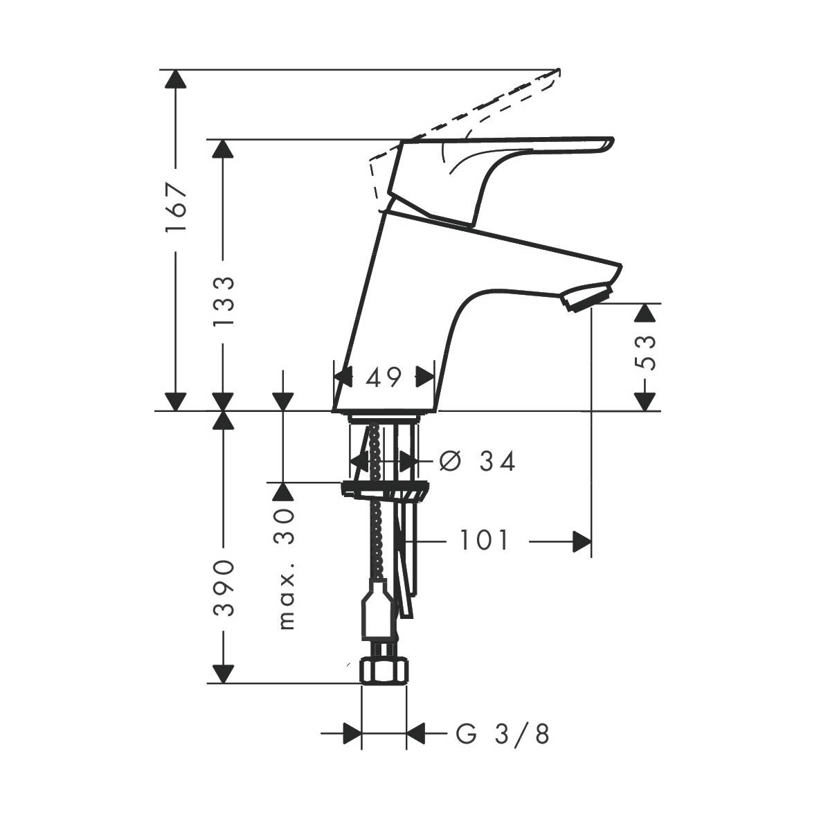• Anschlussart: G 3/8 Zoll Anschlussschläuche