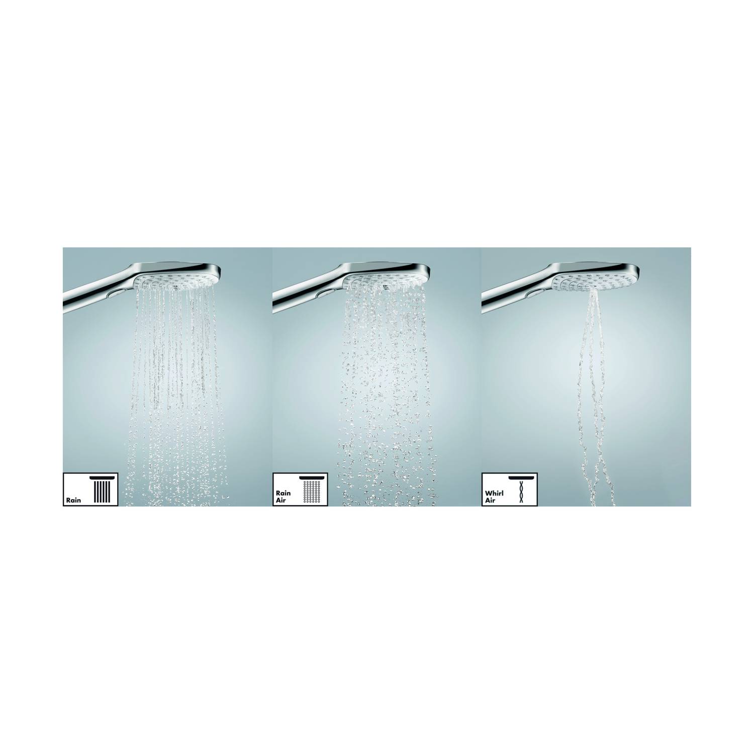- Vielseitiger Duschkomfort mit 3 verschiedenen Strahlarten: RainAir, Rain und WhirlAir