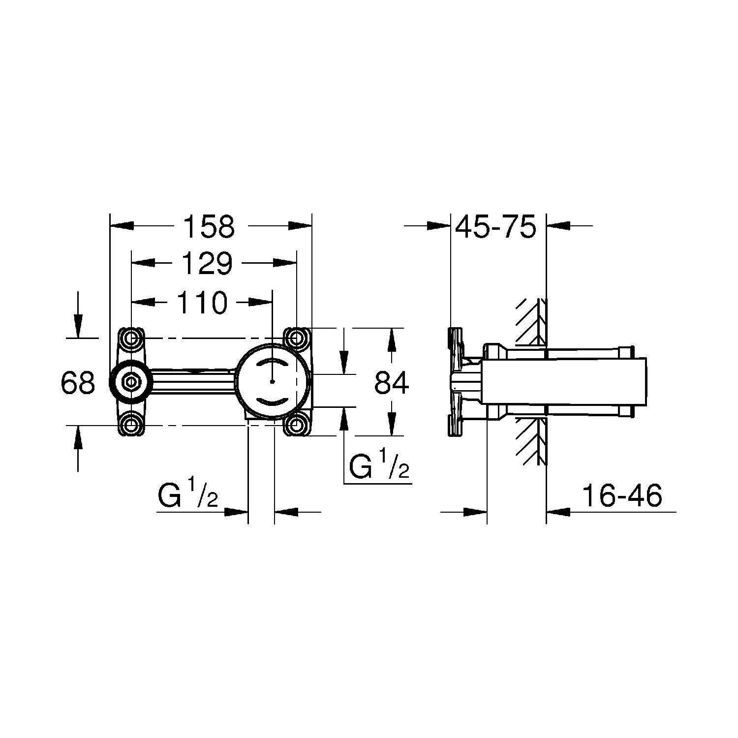 Grohe Universal-Einbaukörper für 2-Loch-Waschtisch-Wandarmaturn