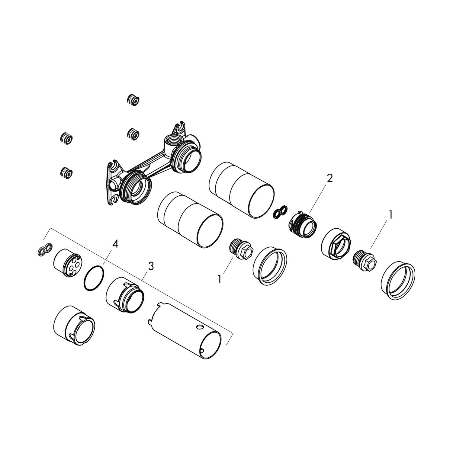 - Grundkörperset für den Waschplatz – für alle Unterputz-wandhängenden hansgrohe Waschtischmischer geeignet