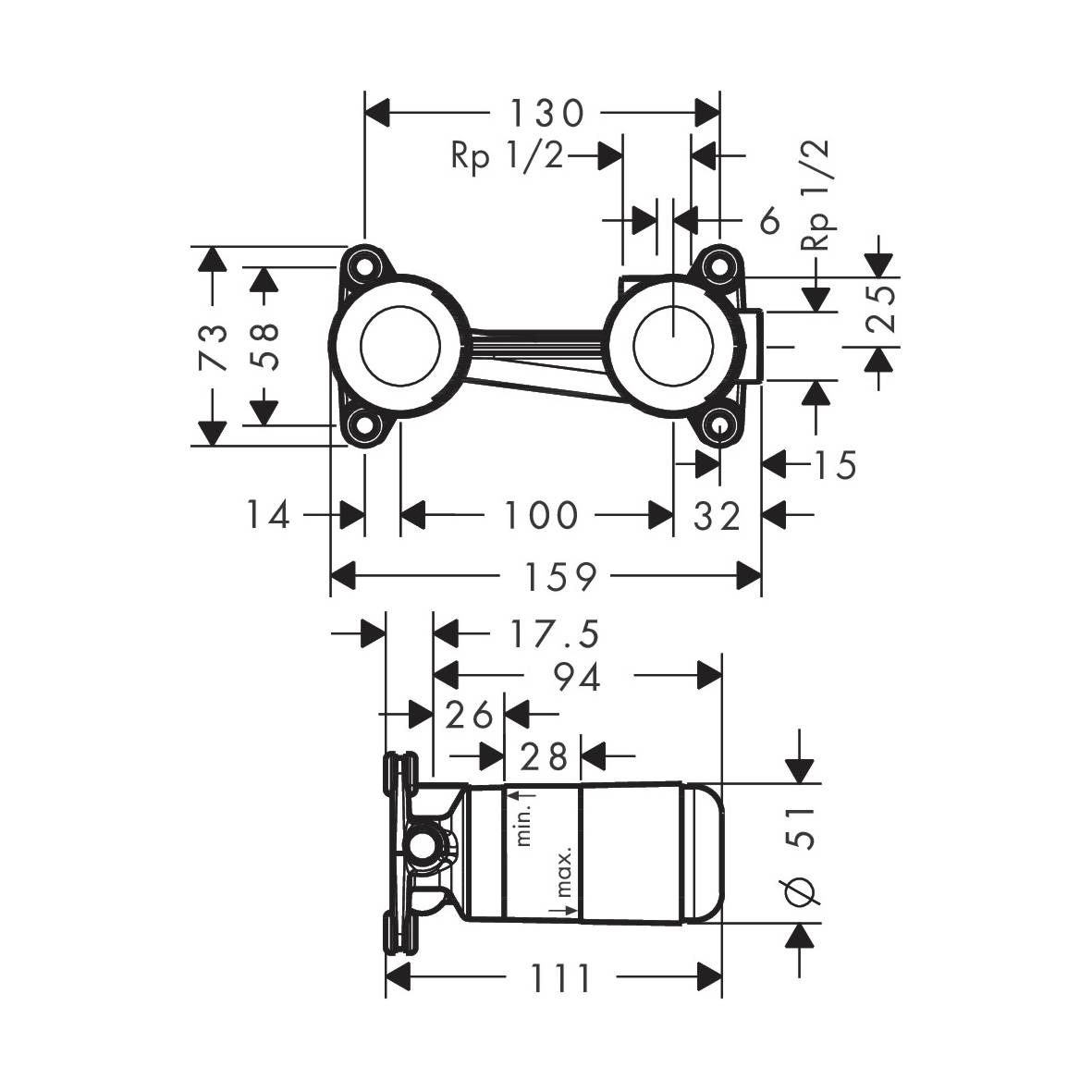 Haben Sie noch Fragen? Wir stehen Ihnen telefonisch unter +49 (0) 4621 - 30 60 89 0 zur Verfügung.Hansgrohe Grundkörper für Einhebel-Waschtischmischer Unterputz für Wandmontage