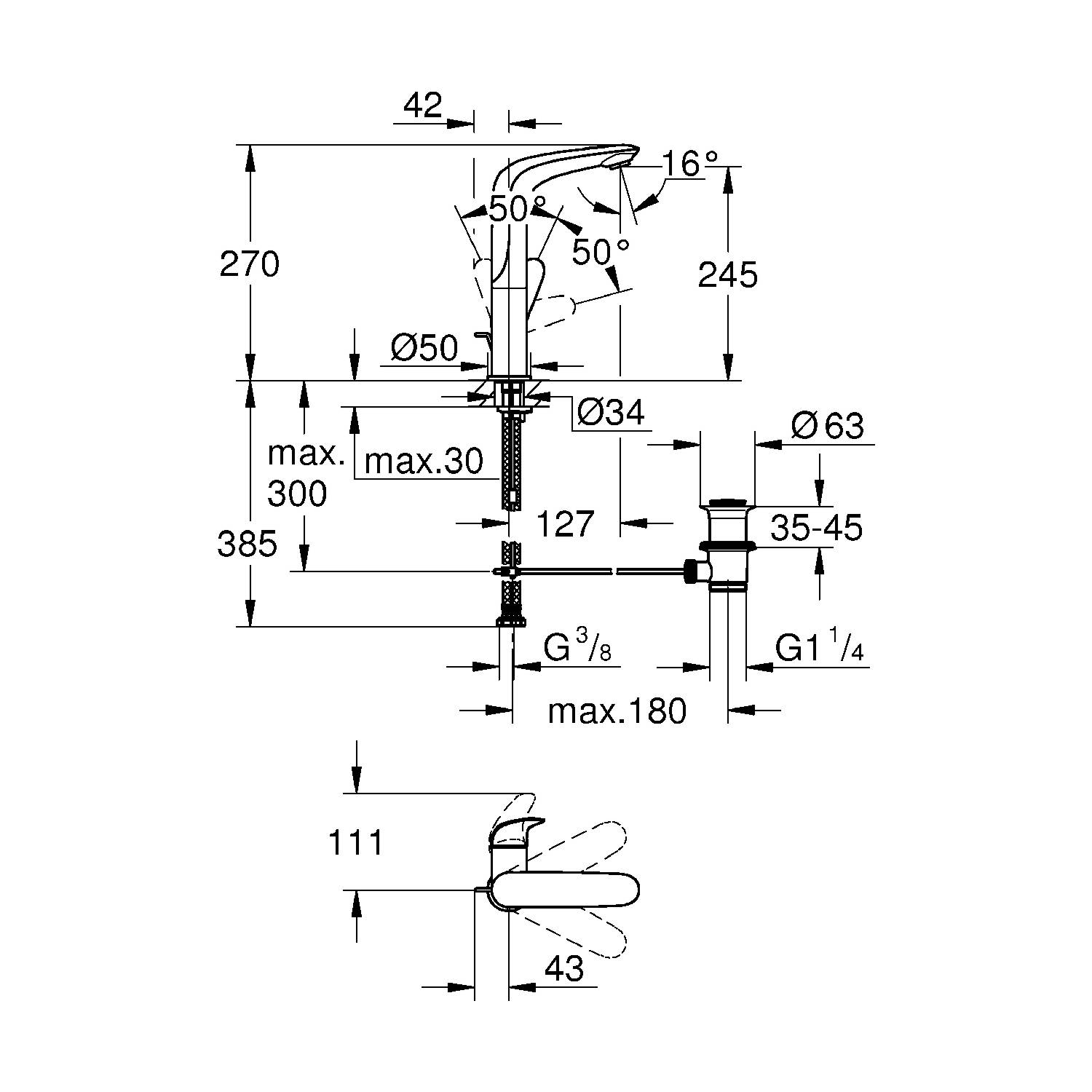 Haben Sie noch Fragen? Wir stehen Ihnen telefonisch unter +49 (0) 4621 - 30 60 89 0 zur Verfügung.Grohe Eurostyle Einhand-Waschtisch-Batterie L-Size mit Zugstangen-Ablaufgarnitur – Eleganz und Effizienz in perfekter Harmonie