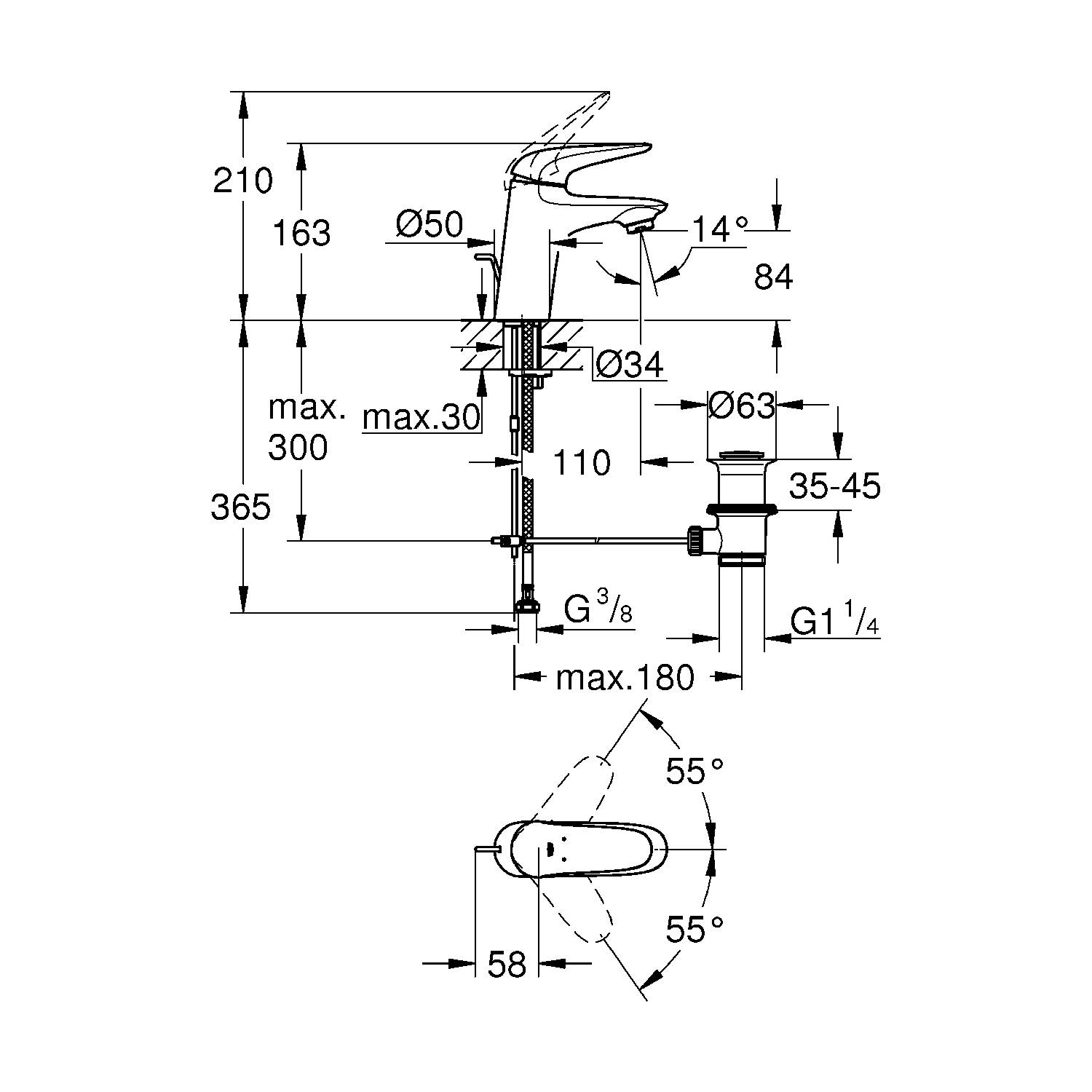 Grohe Eurostyle S-Size Einhand-Waschtischbatterie G 3/8" mit Zugstangen-Ablaufgarnitur