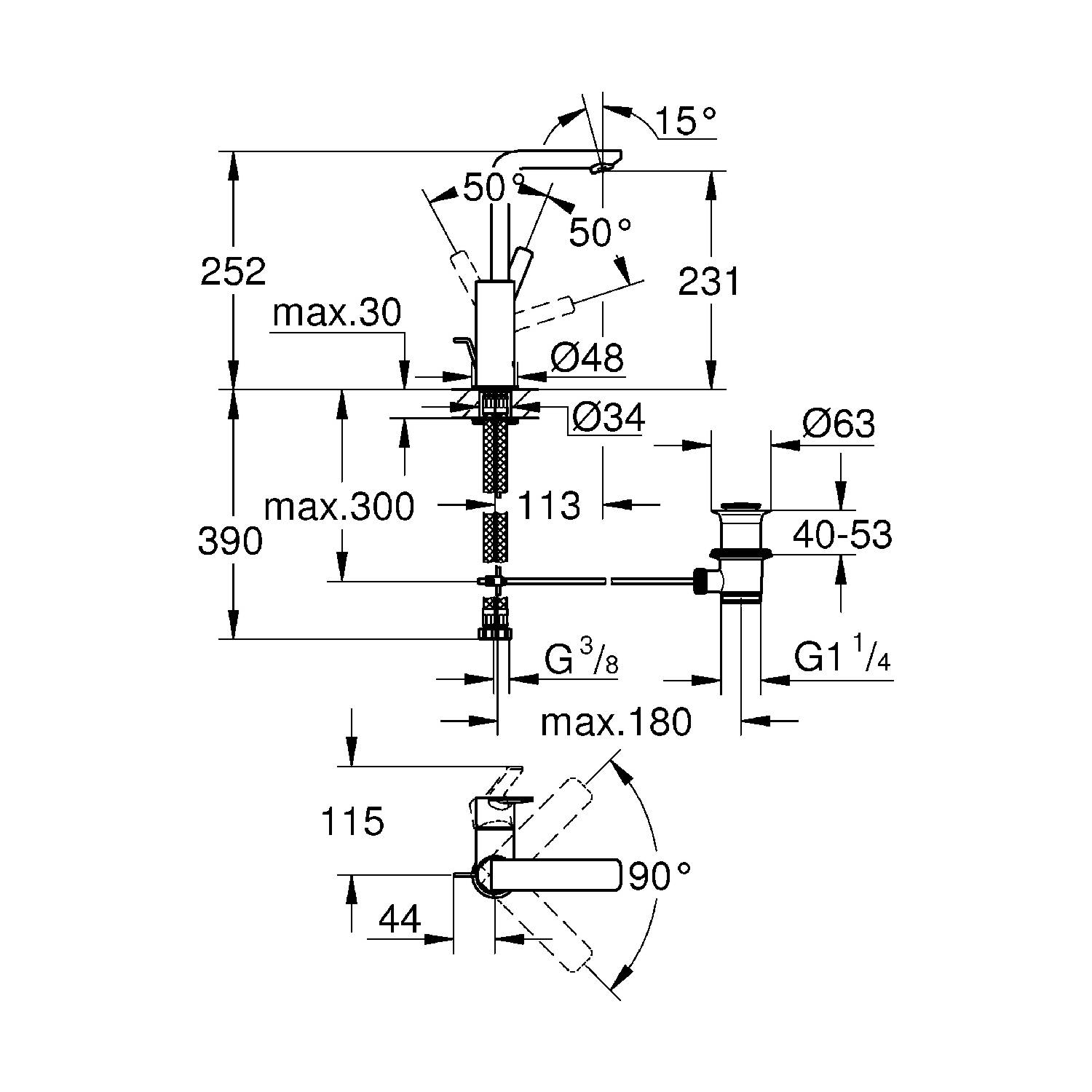- Größe und Installation: Einlochmontage, L-Size, für 1-Loch-Waschtische, einfach zu installieren dank Grohe QuickFix Plus Schnellbefestigungssystem.