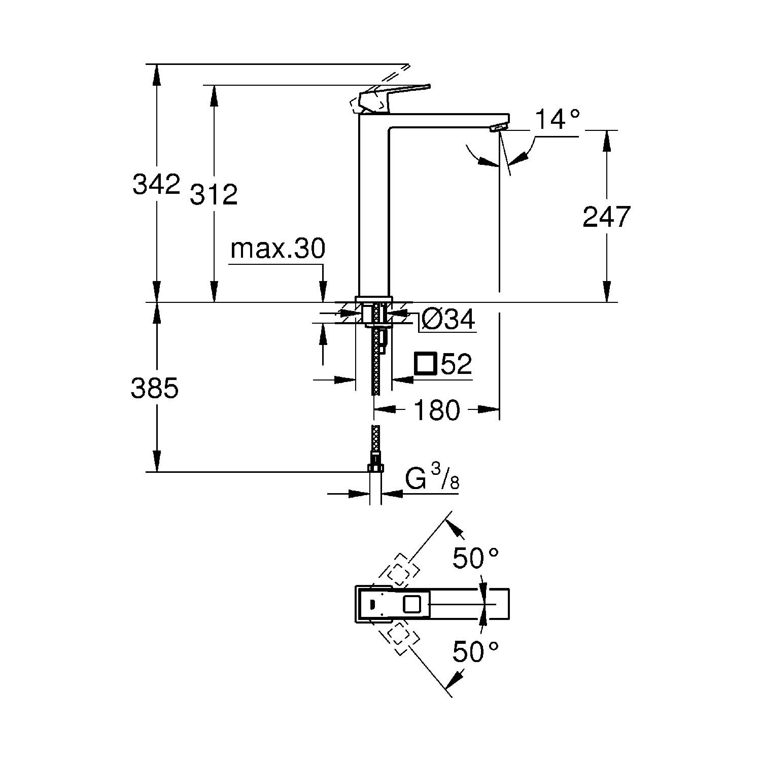 Die Grohe Eurocube Einhebel-Waschtischbatterie für freistehende Waschschüsseln überzeugt mit ihrem eleganten, kubischen Design und modernster Technologie für effizienten Wasserverbrauch. Diese XL-Size Armatur ist perfekt für Waschschüsseln konzipiert und bringt stilvollen Minimalismus in jedes Badezimmer.