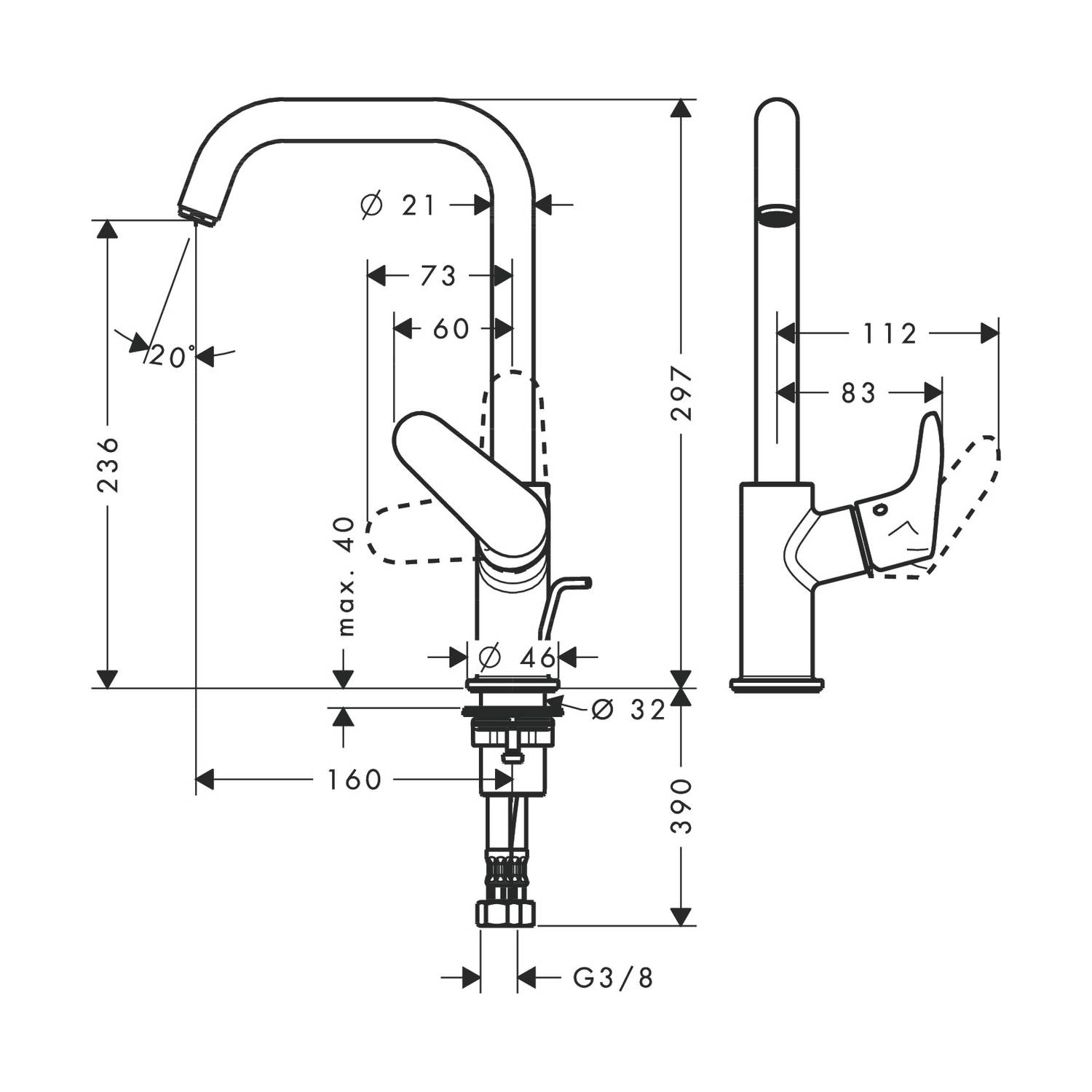 - Hohe Bewegungsfreiheit: Dank der ComfortZone 240 bietet der Waschtischmischer viel Platz und Flexibilität.
