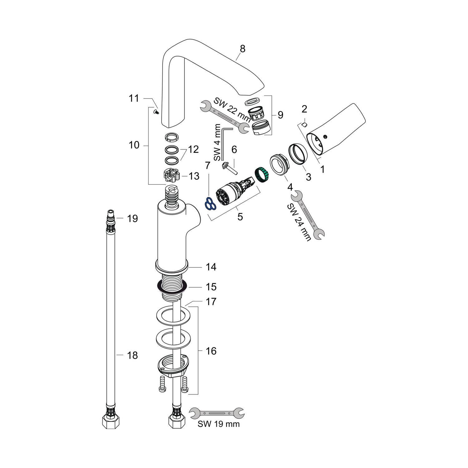 - Hochwertiges Keramikmischsystem für dauerhaft zuverlässige und leichtgängige Steuerung von Wassermenge und -temperatur
