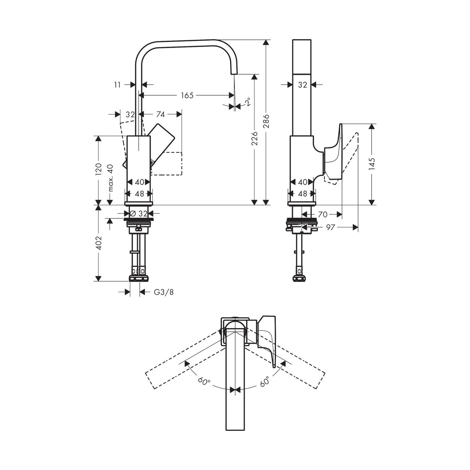 Hansgrohe Metropol 230 Waschtischmischer DN 15 mit 120 Grad Schwenkauslauf
