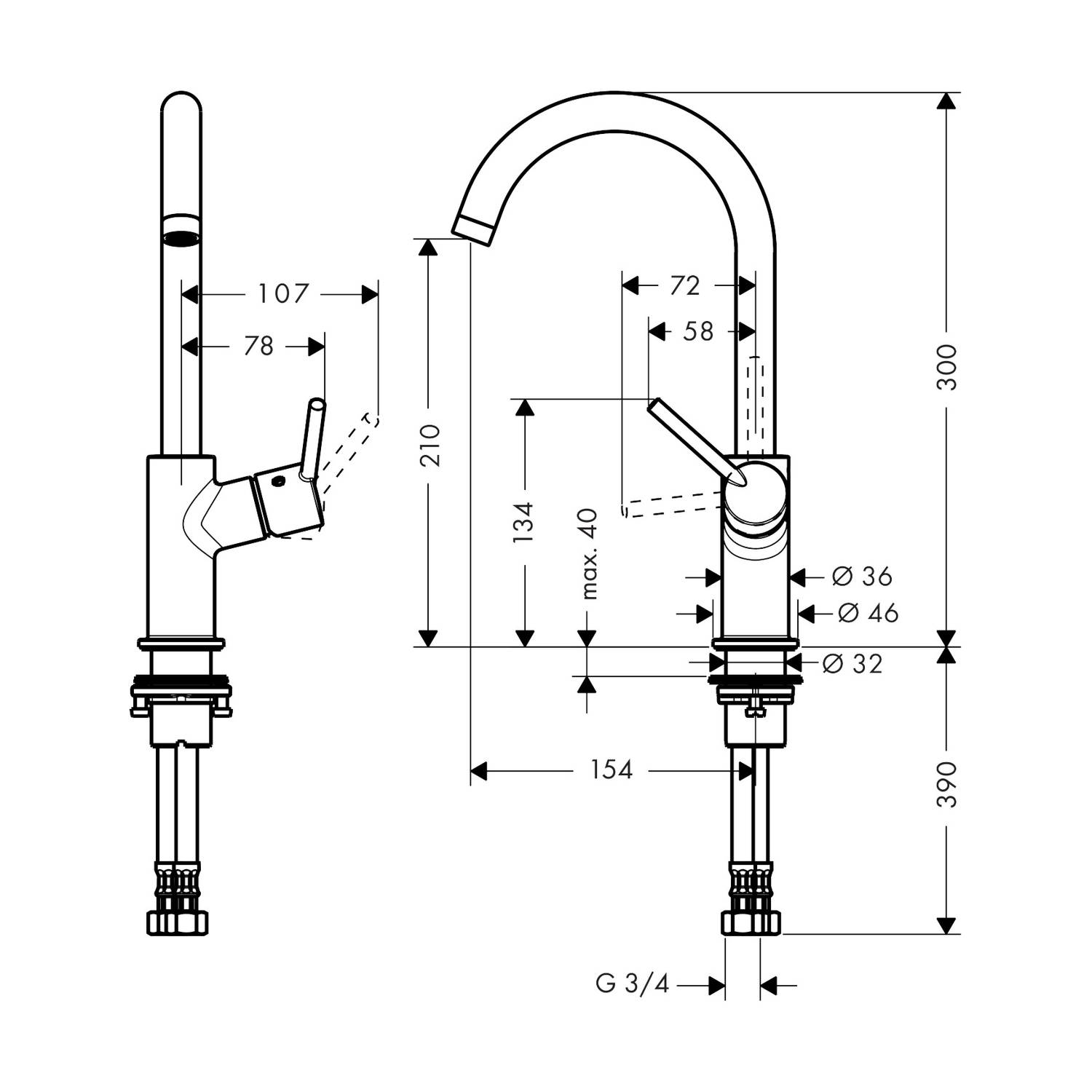 Hansgrohe Talis S2 Waschtischmischer DN 15 mit Schwenkauslauf