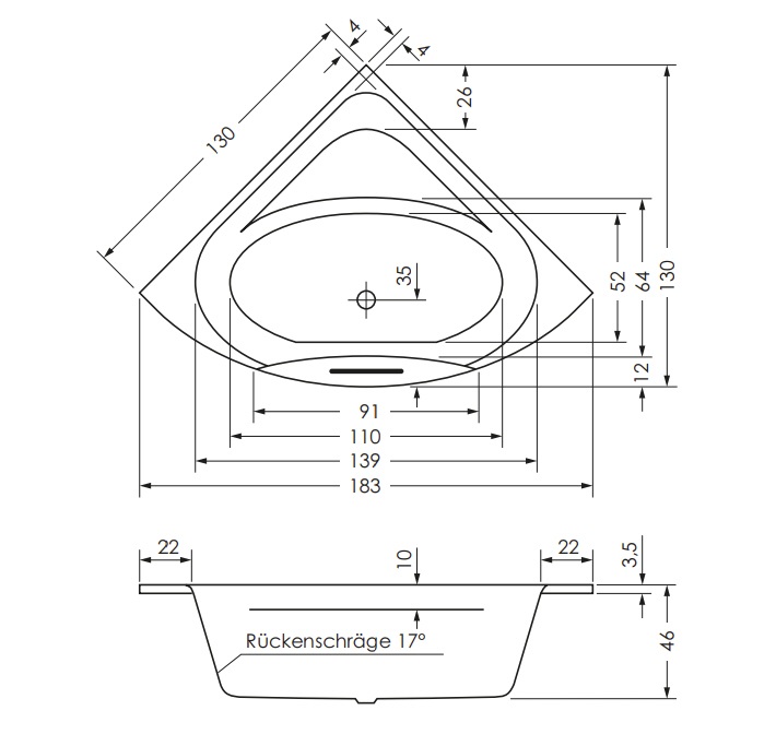 Haben Sie noch Fragen? Wir stehen Ihnen telefonisch unter +49 (0) 4621 - 30 60 89 0 zur Verfügung.Repabad Taurus 130 x 130 x 46 cm Acryl Eck-Badewanne