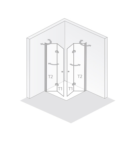 Egal wie beengt die Raumsituation auch sein mag, die Exklusiv 2.0 überzeugt mit einem modernen Design und bewährter Technik. Besonders der Eckeinstieg mit Drehfalttür ist ein innovatives Raumsparwunder. So lassen sich die Duschtüren nicht nur weiträumig öffnen und garantieren einen großzügigen Einstieg in die Duschkabine, sondern können komplett vor der Wand zusammengefaltet werden – ideal für das barrierefreie, generationenübergreifende Bad ohne Hindernisse.