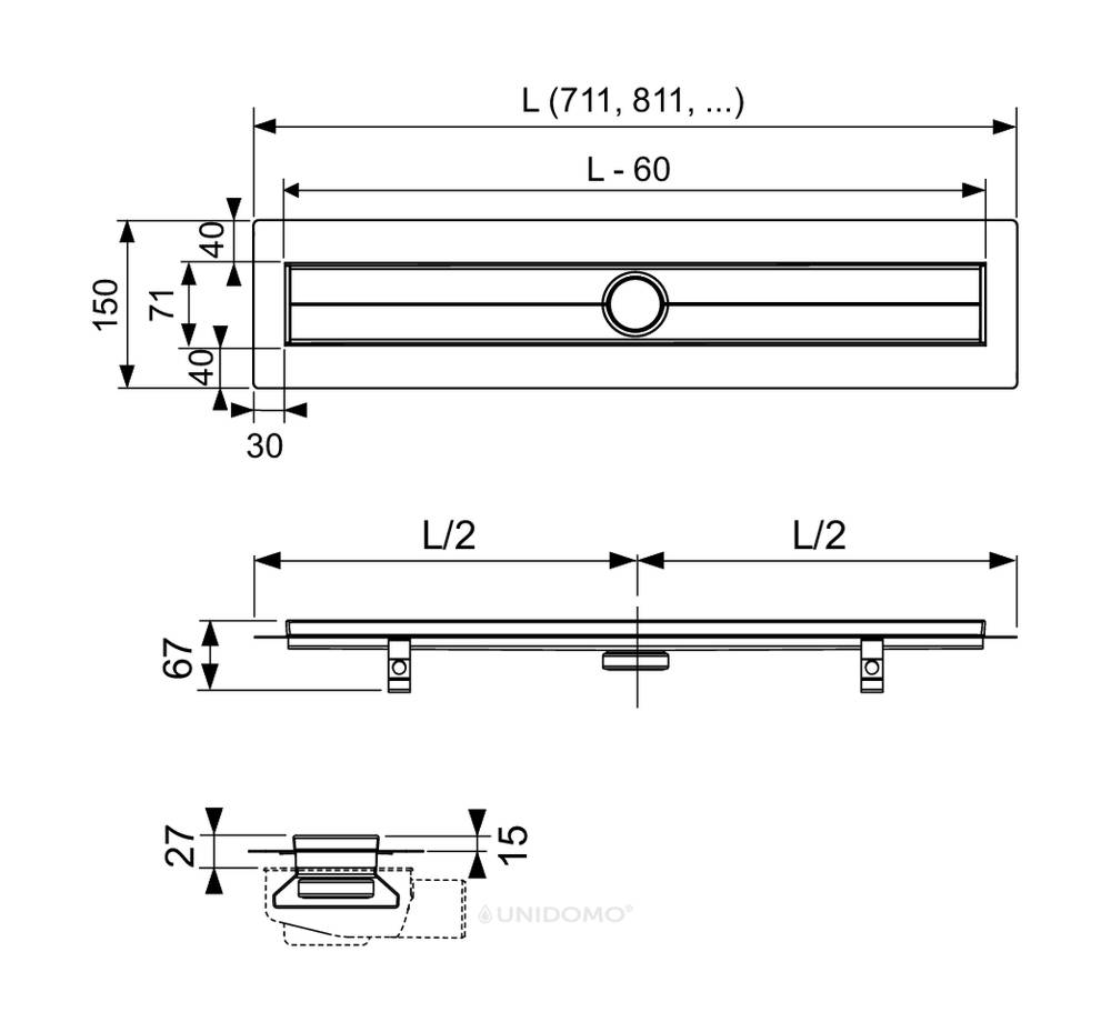 Gesamtlänge L: 911 mm