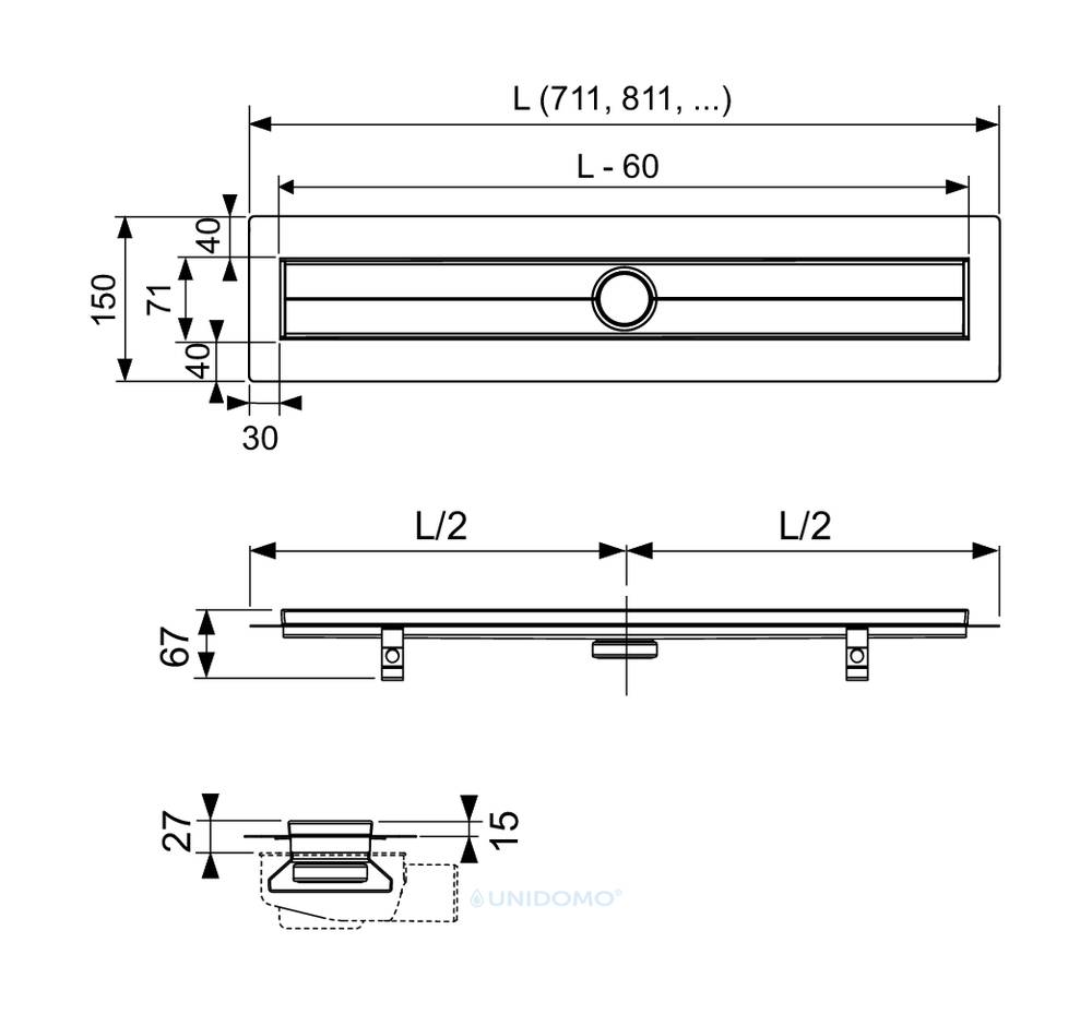 - mittigem Anschlussstutzen für Ablauf